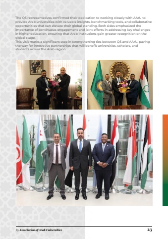 The QS representatives confirmed their dedication to working closely with AArU to provide Arab universities with valuable insights, benchmarking tools, and collaborative opportunities that can elevate their global standing. Both sides emphasized the importance of continuous engagement and joint efforts in addressing key challenges in higher education, ensuring that Arab institutions gain greater recognition on the global stage.This visit marks a significant step in strengthening ties between QS and AArU, paving the way for innovative partnerships that will benefit universities, scholars, and students across the Arab region.by Association of Arab Universities 23