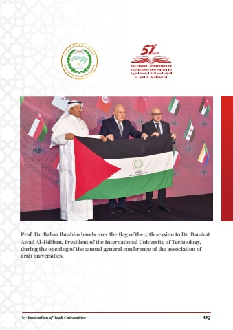 Prof. Dr. Bahaa Ibrahim hands over the flag of the 57th session to Dr. Barakat Awad Al-Hdiban, President of the International University of Technology, during the opening of the annual general conference of the association of arab universities.by Association of Arab Universities 07