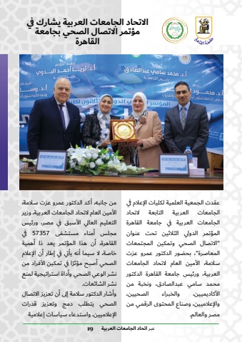 %u0627%u0644%u0627%u062a%u062d%u0627%u062f %u0627%u0644%u062c%u0627%u0645%u0639%u0627%u062a %u0627%u0644%u0639%u0631%u0628%u064a%u0629 %u064a%u0634%u0627%u0631%u0643 %u0641%u064a %u0645%u0624%u062a%u0645%u0631 %u0627%u0644%u0627%u062a%u0635%u0627%u0644 %u0627%u0644%u0635%u062d%u064a %u0628%u062c%u0627%u0645%u0639%u0629 %u0627%u0644%u0642%u0627%u0647%u0631%u0629%u0639%u0642%u062f%u062a %u0627%u0644%u062c%u0645%u0639%u064a%u0629 %u0627%u0644%u0639%u0644%u0645%u064a%u0629 %u0644%u0643%u0644%u064a%u0627%u062a %u0627%u0644%u0625%u0639%u0644%u0627%u0645 %u0641%u064a %u0627%u0644%u062c%u0627%u0645%u0639%u0627%u062a %u0627%u0644%u0639%u0631%u0628%u064a%u0629 %u0627%u0644%u062a%u0627%u0628%u0639%u0629 %u0644%u0627%u062a%u062d%u0627%u062f %u0627%u0644%u062c%u0627%u0645%u0639%u0627%u062a %u0627%u0644%u0639%u0631%u0628%u064a%u0629 %u0641%u064a %u062c%u0627%u0645%u0639%u0629 %u0627%u0644%u0642%u0627%u0647%u0631%u0629 %u0627%u0644%u0645%u0624%u062a%u0645%u0631 %u0627%u0644%u062f%u0648%u0644%u064a %u0627%u0644%u062b%u0644%u0627%u062b%u064a%u0646 %u062a%u062d%u062a %u0639%u0646%u0648%u0627%u0646 \%u0644%u0627%u062a%u0635%u0627%u0644 %u0627%u0644%u0635%u062d%u064a %u0648%u062a%u0645%u0643%u064a%u0646 %u0627%u0644%u0645%u062c%u062a%u0645%u0639%u0627%u062a %u0627%u0644%u0645%u0639%u0627%u0635%u0631%u0629\%u060c %u0628%u062d%u0636%u0648%u0631 %u0627%u0644%u062f%u0643%u062a%u0648%u0631 %u0639%u0645%u0631%u0648 %u0639%u0632%u062a %u0633%u0644%u0627%u0645%u0629%u060c %u0627%u0644%u0623%u0645%u064a%u0646 %u0627%u0644%u0639%u0627%u0645 %u0644%u0627%u062a%u062d%u0627%u062f %u0627%u0644%u062c%u0627%u0645%u0639%u0627%u062a %u0627%u0644%u0639%u0631%u0628%u064a%u0629%u060c %u0648%u0631%u0626%u064a%u0633 %u062c%u0627%u0645%u0639%u0629 %u0627%u0644%u0642%u0627%u0647%u0631%u0629 %u0627%u0644%u062f%u0643%u062a%u0648%u0631 %u0645%u062d%u0645%u062f %u0633%u0627%u0645%u064a %u0639%u0628%u062f%u0627%u0644%u0635%u0627%u062f%u0642%u060c %u0648%u0646%u062e%u0628%u0629 %u0645%u0646 %u0627%u0644%u0623%u0643%u0627%u062f%u064a%u0645%u064a%u064a%u0646%u060c %u0648%u0627%u0644%u062e%u0628%u0631%u0627%u0621 %u0627%u0644%u0635%u062d%u064a%u064a%u0646%u060c %u0648%u0627%u0644%u0625%u0639%u0644%u0627%u0645%u064a%u064a%u0646%u060c %u0648%u0635%u0646%u0627%u0639 %u0627%u0644%u0645%u062d%u062a%u0648%u0649 %u0627%u0644%u0631%u0642%u0645%u064a %u0645%u0646 %u0645%u0635%u0631 %u0648%u0627%u0644%u0639%u0627%u0644%u0645.%u0645%u0646 %u062c%u0627%u0646%u0628%u0647%u060c %u0623%u0643%u062f %u0627%u0644%u062f%u0643%u062a%u0648%u0631 %u0639%u0645%u0631%u0648 %u0639%u0632%u062a %u0633%u0644%u0627%u0645%u0629%u060c %u0627%u0644%u0623%u0645%u064a%u0646 %u0627%u0644%u0639%u0627%u0645 %u0644%u0627%u062a%u062d%u0627%u062f %u0627%u0644%u062c%u0627%u0645%u0639%u0627%u062a %u0627%u0644%u0639%u0631%u0628%u064a%u0629%u060c %u0648%u0632%u064a%u0631 %u0627%u0644%u062a%u0639%u0644%u064a%u0645 %u0627%u0644%u0639%u0627%u0644%u064a %u0627%u0644%u0623%u0633%u0628%u0642 %u0641%u064a %u0645%u0635%u0631%u060c %u0648%u0631%u0626%u064a%u0633 %u0645%u062c%u0644%u0633 %u0623%u0645%u0646%u0627%u0621 %u0645%u0633%u062a%u0634%u0641%u0649 57357 %u0641%u064a %u0627%u0644%u0642%u0627%u0647%u0631%u0629%u060c %u0623%u0646 %u0647%u0630%u0627 %u0627%u0644%u0645%u0624%u062a%u0645%u0631 %u064a%u0639%u062f %u0630%u0627 %u0623%u0647%u0645%u064a%u0629 %u062e%u0627%u0635%u0629%u060c %u0644%u0627 %u0633%u064a%u0645%u0627 %u0623%u0646%u0647 %u064a%u0623%u062a%u064a %u0641%u064a %u0625%u0637%u0627%u0631 %u0623%u0646 %u0627%u0644%u0625%u0639%u0644%u0627%u0645 %u064b %u0627%u0644%u0635%u062d%u064a %u0623%u0635%u0628%u062d %u0645%u0624%u062b%u0631%u0627 %u0641%u064a %u062a%u0645%u0643%u064a%u0646 %u0627%u0644%u0623%u0641%u0631%u0627%u062f %u0645%u0646 %u0646%u0634%u0631 %u0627%u0644%u0648%u0639%u064a %u0627%u0644%u0635%u062d%u064a %u0648%u0623%u062f%u0627%u0629 %u0627%u0633%u062a%u0631%u0627%u062a%u064a%u062c%u064a%u0629 %u0644%u0645%u0646%u0639 %u0646%u0634%u0631 %u0627%u0644%u0634%u0627%u0626%u0639%u0627%u062a.%u0648%u0623%u0634%u0627%u0631 %u0627%u0644%u062f%u0643%u062a%u0648%u0631 %u0633%u0644%u0627%u0645%u0629 %u0625%u0644%u0649 %u0623%u0646 %u062a%u0639%u0632%u064a%u0632 %u0627%u0644%u0627%u062a%u0635%u0627%u0644 %u0627%u0644%u0635%u062d%u064a %u064a%u062a%u0637%u0644%u0628 %u062f%u0645%u062c %u0648%u062a%u0639%u0632%u064a%u0632 %u0642%u062f%u0631%u0627%u062a %u0627%u0644%u0625%u0639%u0644%u0627%u0645%u064a%u064a%u0646%u060c %u0648%u0627%u0633%u062a%u062f%u0639%u0627%u0621 %u0633%u064a%u0627%u0633%u0627%u062a %u0625%u0639%u0644%u0627%u0645%u064a%u0629 %u0639%u0628%u0631 %u0627%u062a%u062d%u0627%u062f %u0627%u0644%u062c%u0627%u0645%u0639%u0627%u062a %u0627%u0644%u0639%u0631%u0628%u064a%u0629 19