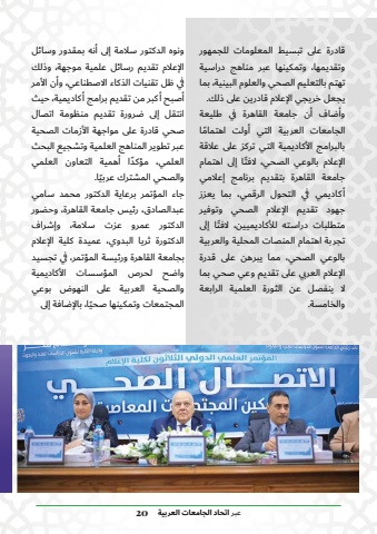 %u0642%u0627%u062f%u0631%u0629 %u0639%u0644%u0649 %u062a%u0628%u0633%u064a%u0637 %u0627%u0644%u0645%u0639%u0644%u0648%u0645%u0627%u062a %u0644%u0644%u062c%u0645%u0647%u0648%u0631 %u0648%u062a%u0642%u062f%u064a%u0645%u0647%u0627%u060c %u0648%u062a%u0645%u0643%u064a%u0646%u0647%u0627 %u0639%u0628%u0631 %u0645%u0646%u0627%u0647%u062c %u062f%u0631%u0627%u0633%u064a%u0629 %u062a%u0647%u062a%u0645 %u0628%u0627%u0644%u062a%u0639%u0644%u064a%u0645 %u0627%u0644%u0635%u062d%u064a %u0648%u0627%u0644%u0639%u0644%u0648%u0645 %u0627%u0644%u0628%u064a%u0646%u064a%u0629%u060c %u0628%u0645%u0627 %u064a%u062c%u0639%u0644 %u062e%u0631%u064a%u062c%u064a %u0627%u0644%u0625%u0639%u0644%u0627%u0645 %u0642%u0627%u062f%u0631%u064a%u0646 %u0639%u0644%u0649 %u0630%u0644%u0643.%u0648%u0623%u0636%u0627%u0641 %u0623%u0646 %u062c%u0627%u0645%u0639%u0629 %u0627%u0644%u0642%u0627%u0647%u0631%u0629 %u0641%u064a %u0637%u0644%u064a%u0639%u0629 %u064b %u0627%u0644%u062c%u0627%u0645%u0639%u0627%u062a %u0627%u0644%u0639%u0631%u0628%u064a%u0629 %u0627%u0644%u062a%u064a %u0623%u0648%u0644%u062a %u0627%u0647%u062a%u0645%u0627%u0645%u0627 %u0628%u0627%u0644%u0628%u0631%u0627%u0645%u062c %u0627%u0644%u0623%u0643%u0627%u062f%u064a%u0645%u064a%u0629 %u0627%u0644%u062a%u064a %u062a%u0631%u0643%u0632 %u0639%u0644%u0649 %u0639%u0644%u0627%u0642%u0629 %u064b %u0627%u0644%u0625%u0639%u0644%u0627%u0645 %u0628%u0627%u0644%u0648%u0639%u064a %u0627%u0644%u0635%u062d%u064a%u060c %u0644%u0627%u0641%u062a%u0627 %u0625%u0644%u0649 %u0627%u0647%u062a%u0645%u0627%u0645 %u062c%u0627%u0645%u0639%u0629 %u0627%u0644%u0642%u0627%u0647%u0631%u0629 %u0628%u062a%u0642%u062f%u064a%u0645 %u0628%u0631%u0646%u0627%u0645%u062c %u0625%u0639%u0644%u0627%u0645%u064a %u0623%u0643%u0627%u062f%u064a%u0645%u064a %u0641%u064a %u0627%u0644%u062a%u062d%u0648%u0644 %u0627%u0644%u0631%u0642%u0645%u064a%u060c %u0628%u0645%u0627 %u064a%u0639%u0632%u0632 %u062c%u0647%u0648%u062f %u062a%u0642%u062f%u064a%u0645 %u0627%u0644%u0625%u0639%u0644%u0627%u0645 %u0627%u0644%u0635%u062d%u064a %u0648%u062a%u0648%u0641%u064a%u0631 %u064b %u0645%u062a%u0637%u0644%u0628%u0627%u062a %u062f%u0631%u0627%u0633%u062a%u0647 %u0644%u0644%u0623%u0643%u0627%u062f%u064a%u0645%u064a%u064a%u0646%u060c %u0644%u0627%u0641%u062a%u0627 %u0625%u0644%u0649 %u062a%u062c%u0631%u0628%u0629 %u0627%u0647%u062a%u0645%u0627%u0645 %u0627%u0644%u0645%u0646%u0635%u0627%u062a %u0627%u0644%u0645%u062d%u0644%u064a%u0629 %u0648%u0627%u0644%u0639%u0631%u0628%u064a%u0629 %u0628%u0627%u0644%u0648%u0639%u064a %u0627%u0644%u0635%u062d%u064a%u060c %u0645%u0645%u0627 %u064a%u0628%u0631%u0647%u0646 %u0639%u0644%u0649 %u0642%u062f%u0631%u0629 %u0627%u0644%u0625%u0639%u0644%u0627%u0645 %u0627%u0644%u0639%u0631%u0628%u064a %u0639%u0644%u0649 %u062a%u0642%u062f%u064a%u0645 %u0648%u0639%u064a %u0635%u062d%u064a %u0628%u0645%u0627 %u0644%u0627 %u064a%u0646%u0641%u0635%u0644 %u0639%u0646 %u0627%u0644%u062b%u0648%u0631%u0629 %u0627%u0644%u0639%u0644%u0645%u064a%u0629 %u0627%u0644%u0631%u0627%u0628%u0639%u0629 %u0648%u0627%u0644%u062e%u0627%u0645%u0633%u0629.%u0648%u0646%u0648%u0647 %u0627%u0644%u062f%u0643%u062a%u0648%u0631 %u0633%u0644%u0627%u0645%u0629 %u0625%u0644%u0649 %u0623%u0646%u0647 %u0628%u0645%u0642%u062f%u0648%u0631 %u0648%u0633%u0627%u0626%u0644 %u0627%u0644%u0625%u0639%u0644%u0627%u0645 %u062a%u0642%u062f%u064a%u0645 %u0631%u0633%u0627%u0626%u0644 %u0639%u0644%u0645%u064a%u0629 %u0645%u0648%u062c%u0647%u0629%u060c %u0648%u0630%u0644%u0643 %u0641%u064a %u0638%u0644 %u062a%u0642%u0646%u064a%u0627%u062a %u0627%u0644%u0630%u0643%u0627%u0621 %u0627%u0644%u0627%u0635%u0637%u0646%u0627%u0639%u064a%u060c %u0648%u0623%u0646 %u0627%u0644%u0623%u0645%u0631 %u0623%u0635%u0628%u062d %u0623%u0643%u0628%u0631 %u0645%u0646 %u062a%u0642%u062f%u064a%u0645 %u0628%u0631%u0627%u0645%u062c %u0623%u0643%u0627%u062f%u064a%u0645%u064a%u0629%u060c %u062d%u064a%u062b %u0627%u0646%u062a%u0642%u0644 %u0625%u0644%u0649 %u0636%u0631%u0648%u0631%u0629 %u062a%u0642%u062f%u064a%u0645 %u0645%u0646%u0638%u0648%u0645%u0629 %u0627%u062a%u0635%u0627%u0644 %u0635%u062d%u064a %u0642%u0627%u062f%u0631%u0629 %u0639%u0644%u0649 %u0645%u0648%u0627%u062c%u0647%u0629 %u0627%u0644%u0623%u0632%u0645%u0627%u062a %u0627%u0644%u0635%u062d%u064a%u0629 %u0639%u0628%u0631 %u062a%u0637%u0648%u064a%u0631 %u0627%u0644%u0645%u0646%u0627%u0647%u062c %u0627%u0644%u0639%u0644%u0645%u064a%u0629 %u0648%u062a%u0634%u062c%u064a%u0639 %u0627%u0644%u0628%u062d%u062b %u064b %u0627%u0644%u0639%u0644%u0645%u064a%u060c %u0645%u0624%u0643%u062f%u0627 %u0623%u0647%u0645%u064a%u0629 %u0627%u0644%u062a%u0639%u0627%u0648%u0646 %u0627%u0644%u0639%u0644%u0645%u064a %u064b%u0627.%u0648%u0627%u0644%u0635%u062d%u064a %u0627%u0644%u0645%u0634%u062a%u0631%u0643 %u0639%u0631%u0628%u064a%u062c%u0627%u0621 %u0627%u0644%u0645%u0624%u062a%u0645%u0631 %u0628%u0631%u0639%u0627%u064a%u0629 %u0627%u0644%u062f%u0643%u062a%u0648%u0631 %u0645%u062d%u0645%u062f %u0633%u0627%u0645%u064a %u0639%u0628%u062f%u0627%u0644%u0635%u0627%u062f%u0642%u060c %u0631%u0626%u064a%u0633 %u062c%u0627%u0645%u0639%u0629 %u0627%u0644%u0642%u0627%u0647%u0631%u0629%u060c %u0648%u062d%u0636%u0648%u0631 %u0627%u0644%u062f%u0643%u062a%u0648%u0631 %u0639%u0645%u0631%u0648 %u0639%u0632%u062a %u0633%u0644%u0627%u0645%u0629%u060c %u0648%u0625%u0634%u0631%u0627%u0641 %u0627%u0644%u062f%u0643%u062a%u0648%u0631%u0629 %u062b%u0631%u064a%u0627 %u0627%u0644%u0628%u062f%u0648%u064a%u060c %u0639%u0645%u064a%u062f%u0629 %u0643%u0644%u064a%u0629 %u0627%u0644%u0625%u0639%u0644%u0627%u0645 %u0628%u062c%u0627%u0645%u0639%u0629 %u0627%u0644%u0642%u0627%u0647%u0631%u0629 %u0648%u0631%u0626%u064a%u0633%u0629 %u0627%u0644%u0645%u0624%u062a%u0645%u0631%u060c %u0641%u064a %u062a%u062c%u0633%u064a%u062f %u0648%u0627%u0636%u062d %u0644%u062d%u0631%u0635 %u0627%u0644%u0645%u0624%u0633%u0633%u0627%u062a %u0627%u0644%u0623%u0643%u0627%u062f%u064a%u0645%u064a%u0629 %u0648%u0627%u0644%u0635%u062d%u064a%u0629 %u0627%u0644%u0639%u0631%u0628%u064a%u0629 %u0639%u0644%u0649 %u0