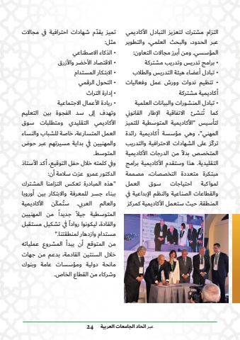 %u0627%u0644%u062a%u0632%u0627%u0645 %u0645%u0634%u062a%u0631%u0643 %u0644%u062a%u0639%u0632%u064a%u0632 %u0627%u0644%u062a%u0628%u0627%u062f%u0644 %u0627%u0644%u0623%u0643%u0627%u062f%u064a%u0645%u064a %u0639%u0628%u0631 %u0627%u0644%u062d%u062f%u0648%u062f%u060c %u0648%u0627%u0644%u0628%u062d%u062b %u0627%u0644%u0639%u0644%u0645%u064a%u060c %u0648%u0627%u0644%u062a%u0637%u0648%u064a%u0631 %u0627%u0644%u0645%u0624%u0633%u0633%u064a. %u0648%u0645%u0646 %u0623%u0628%u0631%u0632 %u0645%u062c%u0627%u0644%u0627%u062a %u0627%u0644%u062a%u0639%u0627%u0648%u0646:%u2022 %u0628%u0631%u0627%u0645%u062c %u062a%u062f%u0631%u064a%u0633 %u0648%u062a%u062f%u0631%u064a%u0628 %u0645%u0634%u062a%u0631%u0643%u0629%u2022 %u062a%u0628%u0627%u062f%u0644 %u0623%u0639%u0636%u0627%u0621 %u0647%u064a%u0626%u0629 %u0627%u0644%u062a%u062f%u0631%u064a%u0633 %u0648%u0627%u0644%u0637%u0644%u0627%u0628%u2022 %u062a%u0646%u0638%u064a%u0645 %u0646%u062f%u0648%u0627%u062a %u0648%u0648%u0631%u0634 %u0639%u0645%u0644 %u0648%u0641%u0639%u0627%u0644%u064a%u0627%u062a %u0623%u0643%u0627%u062f%u064a%u0645%u064a%u0629 %u0645%u0634%u062a%u0631%u0643%u0629%u2022 %u062a%u0628%u0627%u062f%u0644 %u0627%u0644%u0645%u0646%u0634%u0648%u0631%u0627%u062a %u0648%u0627%u0644%u0628%u064a%u0627%u0646%u0627%u062a %u0627%u0644%u0639%u0644%u0645%u064a%u0629%u064f %u0643%u0645%u0627 %u062a%u0646%u0634%u0626 %u0627%u0644%u0627%u062a%u0641%u0627%u0642%u064a%u0629 %u0627%u0644%u0625%u0637%u0627%u0631 %u0627%u0644%u0642%u0627%u0646%u0648%u0646%u064a %u0644%u062a%u0623%u0633%u064a%u0633 \%u0627%u0644%u0623%u0643%u0627%u062f%u064a%u0645%u064a%u0629 %u0627%u0644%u0645%u062a%u0648%u0633%u0637%u064a%u0629 %u0644%u0644%u062a%u0645%u064a%u0632 %u0627%u0644%u0645%u0647%u0646%u064a\ %u0648%u0647%u064a %u0645%u0624%u0633%u0633%u0629 %u0623%u0643%u0627%u062f%u064a%u0645%u064a%u0629 %u0631%u0627%u0626%u062f%u0629 %u062a%u0631%u0643%u0651%u0632 %u0639%u0644%u0649 %u0627%u0644%u0634%u0647%u0627%u062f%u0627%u062a %u0627%u0644%u0627%u062d%u062a%u0631%u0627%u0641%u064a%u0629 %u0648%u0627%u0644%u062a%u062f%u0631%u064a%u0628 %u0627%u0644%u0645%u062a%u062e%u0635%u0635 %u0628%u062f%u0644%u0627%u064b %u0645%u0646 %u0627%u0644%u062f%u0631%u062c%u0627%u062a %u0627%u0644%u0623%u0643%u0627%u062f%u064a%u0645%u064a%u0629 %u0627%u0644%u062a%u0642%u0644%u064a%u062f%u064a%u0629. %u0647%u0630%u0627 %u0648%u0633%u062a%u0642%u062f%u0645 %u0627%u0644%u0623%u0643%u0627%u062f%u064a%u0645%u064a%u0629 %u0628%u0631%u0627%u0645%u062c %u0645%u0628%u062a%u0643%u0631%u0629 %u0645%u062a%u0639%u062f%u062f%u0629 %u0627%u0644%u062a%u062e%u0635%u0635%u0627%u062a%u060c %u0645%u0635%u0645%u0645%u0629 %u0644%u0645%u0648%u0627%u0643%u0628%u0629 %u0627%u062d%u062a%u064a%u0627%u062c%u0627%u062a %u0633%u0648%u0642 %u0627%u0644%u0639%u0645%u0644 %u0648%u0627%u0644%u0642%u0637%u0627%u0639%u0627%u062a %u0627%u0644%u0635%u0646%u0627%u0639%u064a%u0629 %u0648%u0627%u0644%u0646%u0638%u0645 %u0627%u0644%u0625%u0628%u062f%u0627%u0639%u064a%u0629 %u0641%u064a %u0627%u0644%u0645%u0646%u0637%u0642%u0629. %u062d%u064a%u062b %u0633%u062a%u0639%u0645%u0644 %u0627%u0644%u0623%u0643%u0627%u062f%u064a%u0645%u064a%u0629 %u0643%u0645%u0631%u0643%u0632 %u0651 %u062a%u0645%u064a%u0632 %u064a%u0642%u062f%u0645 %u0634%u0647%u0627%u062f%u0627%u062a %u0627%u062d%u062a%u0631%u0627%u0641%u064a%u0629 %u0641%u064a %u0645%u062c%u0627%u0644%u0627%u062a %u0645%u062b%u0644:%u2022 %u0627%u0644%u0630%u0643%u0627%u0621 %u0627%u0644%u0627%u0635%u0637%u0646%u0627%u0639%u064a%u2022 %u0627%u0644%u0627%u0642%u062a%u0635%u0627%u062f %u0627%u0644%u0623%u062e%u0636%u0631 %u0648%u0627%u0644%u0623%u0632%u0631%u0642%u2022 %u0627%u0644%u0627%u0628%u062a%u0643%u0627%u0631 %u0627%u0644%u0645%u0633%u062a%u062f%u0627%u0645%u2022 %u0627%u0644%u062a%u062d%u0648%u0644 %u0627%u0644%u0631%u0642%u0645%u064a%u2022 %u0625%u062f%u0627%u0631%u0629 %u0627%u0644%u062a%u0631%u0627%u062b%u2022 %u0631%u064a%u0627%u062f%u0629 %u0627%u0644%u0623%u0639%u0645%u0627%u0644 %u0627%u0644%u0627%u062c%u062a%u0645%u0627%u0639%u064a%u0629%u0648%u062a%u0647%u062f%u0641 %u0625%u0644%u0649 %u0633%u062f %u0627%u0644%u0641%u062c%u0648%u0629 %u0628%u064a%u0646 %u0627%u0644%u062a%u0639%u0644%u064a%u0645 %u0627%u0644%u0623%u0643%u0627%u062f%u064a%u0645%u064a %u0627%u0644%u062a%u0642%u0644%u064a%u062f%u064a %u0648%u0645%u062a%u0637%u0644%u0628%u0627%u062a %u0633%u0648%u0642 %u0627%u0644%u0639%u0645%u0644 %u0627%u0644%u0645%u062a%u0633%u0627%u0631%u0639%u0629%u060c %u062e%u0627%u0635%u0629 %u0644%u0644%u0634%u0628%u0627%u0628 %u0648%u0627%u0644%u0646%u0633%u0627%u0621 %u0648%u0627%u0644%u0645%u0647%u0646%u064a%u064a%u0646 %u0641%u064a %u0628%u062f%u0627%u064a%u0629 %u0645%u0633%u064a%u0631%u062a%u0647%u0645 %u0639%u0628%u0631 %u062d%u0648%u0636 %u0627%u0644%u0645%u062a%u0648%u0633%u0637.%u0648%u0641%u064a %u0643%u0644%u0645%u062a%u0647 %u062e%u0644%u0627%u0644 %u062d%u0641%u0644 %u0627%u0644%u062a%u0648%u0642%u064a%u0639%u060c %u0623%u0643%u062f %u0627%u0644%u0623%u0633%u062a%u0627%u0630 %u0627%u0644%u062f%u0643%u062a%u0648%u0631 %u0639%u0645%u0631%u0648 %u0639%u0632%u062a %u0633%u0644%u0627%u0645%u0629 %u0623%u0646:\%u0630%u0647 %u0627%u0644%u0645%u0628%u0627%u062f%u0631%u0629 %u062a%u0639%u0643%u0633 %u0627%u0644%u062a%u0632%u0627%u0645%u0646%u0627 %u0627%u0644%u0645%u0634%u062a%u0631%u0643 %u0628%u0628%u0646%u0627%u0621 %u062c%u0633%u0631 %u0644%u0644%u0645%u0639%u0631%u0641%u0629 %u0648%u0627%u0644%u0627%u0628%u062a%u0643%u0627%u0631 %u0628%u064a%u0646 %u0623%u0648%u0631%u0648%u0628%u0627 %u0648%u0627%u0644%u0639%u0627%u0644%u0645 %u0627%u0644%u0639%u0631%u0628 %u064f %u064a. %u0633%u062a%u0645%u0643%u0651%u0646 %u0627%u0644%u0623%u0643%u0627%u062f%u064a%u0645%u064a%u0629 %u0627%u0644%u0645%u062a%u0648%u0633%u0637%u064a%u0629 %u062c%u064a%u0644%u0627%u064b %u062c%u062f%u064a%u062f%u0627%u064b %u0645%u0646 %u0627%u0644%u0645%u0647%u0646%u064a%u064a%u0646 %u0648%u0627%u0644%u0642%u0627%u062f%u0629%u060c %u0644%u064a%u0643%u0648%u0646%u0648%u0627 %u0631%u0648%u0627%u062f%u0627%u064b %u0641%u0