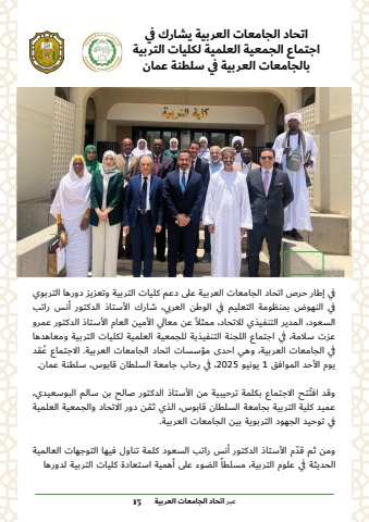 %u0641%u064a %u0625%u0637%u0627%u0631 %u062d%u0631%u0635 %u0627%u062a%u062d%u0627%u062f %u0627%u0644%u062c%u0627%u0645%u0639%u0627%u062a %u0627%u0644%u0639%u0631%u0628%u064a%u0629 %u0639%u0644%u0649 %u062f%u0639%u0645 %u0643%u0644%u064a%u0627%u062a %u0627%u0644%u062a%u0631%u0628%u064a%u0629 %u0648%u062a%u0639%u0632%u064a%u0632 %u062f%u0648%u0631%u0647%u0627 %u0627%u0644%u062a%u0631%u0628%u0648%u064a %u0641%u064a %u0627%u0644%u0646%u0647%u0648%u0636 %u0628%u0645%u0646%u0638%u0648%u0645%u0629 %u0627%u0644%u062a%u0639%u0644%u064a%u0645 %u0641%u064a %u0627%u0644%u0648%u0637%u0646 %u0627%u0644%u0639%u0631%u0628%u064a%u060c %u0634%u0627%u0631%u0643 %u0627%u0644%u0623%u0633%u062a%u0627%u0630 %u0627%u0644%u062f%u0643%u062a%u0648%u0631 %u0623%u0646%u0633 %u0631%u0627%u062a%u0628 %u0627%u0644%u0633%u0639%u0648%u062f%u060c %u0627%u0644%u0645%u062f%u064a%u0631 %u0627%u0644%u062a%u0646%u0641%u064a%u0630%u064a %u0644%u0644%u0627%u062a%u062d%u0627%u062f%u060c %u0645%u0645%u062b%u0644%u0627%u064b %u0639%u0646 %u0645%u0639%u0627%u0644%u064a %u0627%u0644%u0623%u0645%u064a%u0646 %u0627%u0644%u0639%u0627%u0645 %u0627%u0644%u0623%u0633%u062a%u0627%u0630 %u0627%u0644%u062f%u0643%u062a%u0648%u0631 %u0639%u0645%u0631%u0648 %u0639%u0632%u062a %u0633%u0644%u0627%u0645%u0629%u060c %u0641%u064a %u0627%u062c%u062a%u0645%u0627%u0639 %u0627%u0644%u0644%u062c%u0646%u0629 %u0627%u0644%u062a%u0646%u0641%u064a%u0630%u064a%u0629 %u0644%u0644%u062c%u0645%u0639%u064a%u0629 %u0627%u0644%u0639%u0644%u0645%u064a%u0629 %u0644%u0643%u0644%u064a%u0627%u062a %u0627%u0644%u062a%u0631%u0628%u064a%u0629 %u0648%u0645%u0639%u0627%u0647%u062f%u0647%u0627 %u0641 %u064f %u064a %u0627%u0644%u062c%u0627%u0645%u0639%u0627%u062a %u0627%u0644%u0639%u0631%u0628%u064a%u0629%u060c %u0648%u0647%u064a %u0627%u062d%u062f%u0649 %u0645%u0624%u0633%u0633%u0627%u062a %u0627%u062a%u062d%u0627%u062f %u0627%u0644%u062c%u0627%u0645%u0639%u0627%u062a %u0627%u0644%u0639%u0631%u0628%u064a%u0629. %u0627%u0644%u0627%u062c%u062a%u0645%u0627%u0639 %u0639%u0642%u062f %u064a%u0648%u0645 %u0627%u0644%u0623%u062d%u062f %u0627%u0644%u0645%u0648%u0627%u0641%u0642 1 %u064a%u0648%u0646%u064a%u0648 2025 %u060c%u0641%u064a %u0631%u062d%u0627%u0628 %u062c%u0627%u0645%u0639%u0629 %u0627%u0644%u0633%u0644%u0637%u0627%u0646 %u0642%u0627%u0628%u0648%u0633%u060c %u0633%u0644%u0637%u0646%u0629 %u0639%u0645%u0627%u0646.%u064f %u0648%u0642%u062f %u0627%u0641%u062a%u062a%u062d %u0627%u0644%u0627%u062c%u062a%u0645%u0627%u0639 %u0628%u0643%u0644%u0645%u0629 %u062a%u0631%u062d%u064a%u0628%u064a%u0629 %u0645%u0646 %u0627%u0644%u0623%u0633%u062a%u0627%u0630 %u0627%u0644%u062f%u0643%u062a%u0648%u0631 %u0635%u0627%u0644%u062d %u0628%u0646 %u0633%u0627%u0644%u0645 %u0627%u0644%u0628%u0648%u0633%u0639%u064a%u062f%u064a%u060c %u0651 %u0639%u0645%u064a%u062f %u0643%u0644%u064a%u0629 %u0627%u0644%u062a%u0631%u0628%u064a%u0629 %u0628%u062c%u0627%u0645%u0639%u0629 %u0627%u0644%u0633%u0644%u0637%u0627%u0646 %u0642%u0627%u0628%u0648%u0633%u060c %u0627%u0644%u0630%u064a %u062b%u0645%u0646 %u062f%u0648%u0631 %u0627%u0644%u0627%u062a%u062d%u0627%u062f %u0648%u0627%u0644%u062c%u0645%u0639%u064a%u0629 %u0627%u0644%u0639%u0644%u0645%u064a%u0629 %u0641%u064a %u062a%u0648%u062d%u064a%u062f %u0627%u0644%u062c%u0647%u0648%u062f %u0627%u0644%u062a%u0631%u0628%u0648%u064a%u0629 %u0628%u064a%u0646 %u0627%u0644%u062c%u0627%u0645%u0639%u0627%u062a %u0627%u0644%u0639%u0631%u0628%u064a%u0629.%u0651 %u0648%u0645%u0646 %u062b%u0645 %u0642%u062f%u0645 %u0627%u0644%u0623%u0633%u062a%u0627%u0630 %u0627%u0644%u062f%u0643%u062a%u0648%u0631 %u0623%u0646%u0633 %u0631%u0627%u062a%u0628 %u0627%u0644%u0633%u0639%u0648%u062f %u0643%u0644%u0645%u0629 %u062a%u0646%u0627%u0648%u0644 %u0641%u064a%u0647%u0627 %u0627%u0644%u062a%u0648%u062c%u0647%u0627%u062a %u0627%u0644%u0639%u0627%u0644%u0645%u064a%u0629 %u064b %u0627%u0644%u0636%u0648%u0621 %u0639%u0644%u0649 %u0623%u0647%u0645%u064a%u0629 %u0627%u0633%u062a%u0639%u0627%u062f%u0629 %u0643%u0644%u064a%u0627%u062a %u0627%u0644%u062a%u0631%u0628%u064a%u0629 %u0644%u062f%u0648%u0631%u0647%u0627 %u0627%u0644%u062d%u062f%u064a%u062b%u0629 %u0641%u064a %u0639%u0644%u0648%u0645 %u0627%u0644%u062a%u0631%u0628%u064a%u0629%u060c %u0645%u0633%u0644%u0637%u0627%u0627%u062a%u062d%u0627%u062f %u0627%u0644%u062c%u0627%u0645%u0639%u0627%u062a %u0627%u0644%u0639%u0631%u0628%u064a%u0629 %u064a%u0634%u0627%u0631%u0643 %u0641%u064a %u0627%u062c%u062a%u0645%u0627%u0639 %u0627%u0644%u062c%u0645%u0639%u064a%u0629 %u0627%u0644%u0639%u0644%u0645%u064a%u0629 %u0644%u0643%u0644%u064a%u0627%u062a %u0627%u0644%u062a%u0631%u0628%u064a%u0629 %u0628%u0627%u0644%u062c%u0627%u0645%u0639%u0627%u062a %u0627%u0644%u0639%u0631%u0628%u064a%u0629 %u0641%u064a %u0633%u0644%u0637%u0646%u0629 %u0639%u0645%u0627%u0646%u0639%u0628%u0631 %u0627%u062a%u062d%u0627%u062f %u0627%u0644%u062c%u0627%u0645%u0639%u0627%u062a %u0627%u0644%u0639%u0631%u0628%u064a%u0629 15