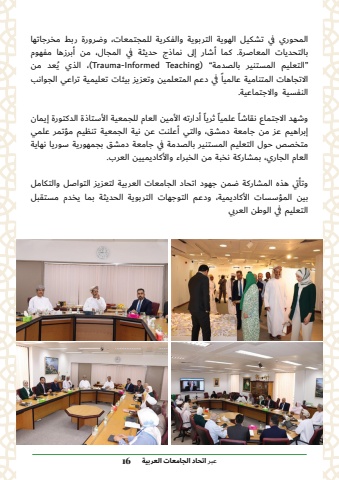 %u0627%u0644%u0645%u062d%u0648%u0631%u064a %u0641%u064a %u062a%u0634%u0643%u064a%u0644 %u0627%u0644%u0647%u0648%u064a%u0629 %u0627%u0644%u062a%u0631%u0628%u0648%u064a%u0629 %u0648%u0627%u0644%u0641%u0643%u0631%u064a%u0629 %u0644%u0644%u0645%u062c%u062a%u0645%u0639%u0627%u062a%u060c %u0648%u0636%u0631%u0648%u0631%u0629 %u0631%u0628%u0637 %u0645%u062e%u0631%u062c%u0627%u062a%u0647%u0627 %u0628%u0627%u0644%u062a%u062d%u062f%u064a%u0627%u062a %u0627%u0644%u0645%u0639%u0627%u0635%u0631%u0629. %u0643%u0645%u0627 %u0623%u0634%u0627%u0631 %u0625%u0644%u0649 %u0646%u0645%u0627%u0630%u062c %u062d%u062f%u064a%u062b%u0629 %u0641%u064a %u0627%u0644%u0645%u062c%u0627%u0644%u060c %u0645%u0646 %u0623%u0628%u0631%u0632%u0647%u0627 %u0645%u0641%u0647%u0648%u0645 %u201c%u0627%u0644%u062a%u0639%u0644%u064a%u0645 %u0627%u0644%u0645%u0633%u062a%u0646%u064a%u0631 %u0628%u0627%u0644%u0635%u062f%u0645%u0629%u201d (Teaching Informed-Trauma %u060c( %u064f %u0627%u0644%u0630%u064a %u064a%u0639%u062f %u0645%u0646 %u064b %u0641%u064a %u062f%u0639%u0645 %u0627%u0644%u0645%u062a%u0639%u0644%u0645%u064a%u0646 %u0648%u062a%u0639%u0632%u064a%u0632 %u0628%u064a%u0626%u0627%u062a %u062a%u0639%u0644%u064a%u0645%u064a%u0629 %u062a%u0631%u0627%u0639%u064a %u0627%u0644%u062c%u0648%u0627%u0646%u0628 %u0627%u0644%u0627%u062a%u062c%u0627%u0647%u0627%u062a %u0627%u0644%u0645%u062a%u0646%u0627%u0645%u064a%u0629 %u0639%u0627%u0644%u0645%u064a%u0627%u0627%u0644%u0646%u0641%u0633%u064a%u0629 %u0648%u0627%u0644%u0627%u062c%u062a%u0645%u0627%u0639%u064a%u0629.%u064b %u0623%u062f%u0627%u0631%u062a%u0647 %u0627%u0644%u0623%u0645%u064a%u0646 %u0627%u0644%u0639%u0627%u0645 %u0644%u0644%u062c%u0645%u0639%u064a%u0629 %u0627%u0644%u0623%u0633%u062a%u0627%u0630%u0629 %u0627%u0644%u062f%u0643%u062a%u0648%u0631%u0629 %u0625%u064a%u0645%u0627%u0646 %u064b %u062b%u0631%u064a%u0627%u064b %u0639%u0644%u0645%u064a%u0627%u0648%u0634%u0647%u062f %u0627%u0644%u0627%u062c%u062a%u0645%u0627%u0639 %u0646%u0642%u0627%u0634%u0627%u0625%u0628%u0631%u0627%u0647%u064a%u0645 %u0639%u0632 %u0645%u0646 %u062c%u0627%u0645%u0639%u0629 %u062f%u0645%u0634%u0642%u060c %u0648%u0627%u0644%u062a%u064a %u0623%u0639%u0644%u0646%u062a %u0639%u0646 %u0646%u064a%u0629 %u0627%u0644%u062c%u0645%u0639%u064a%u0629 %u062a%u0646%u0638%u064a%u0645 %u0645%u0624%u062a%u0645%u0631 %u0639%u0644%u0645%u064a %u0645%u062a%u062e%u0635%u0635 %u062d%u0648%u0644 %u0627%u0644%u062a%u0639%u0644%u064a%u0645 %u0627%u0644%u0645%u0633%u062a%u0646%u064a%u0631 %u0628%u0627%u0644%u0635%u062f%u0645%u0629 %u0641%u064a %u062c%u0627%u0645%u0639%u0629 %u062f%u0645%u0634%u0642 %u0628%u062c%u0645%u0647%u0648%u0631%u064a%u0629 %u0633%u0648%u0631%u064a%u0627 %u0646%u0647%u0627%u064a%u0629 %u0627%u0644%u0639%u0627%u0645 %u0627%u0644%u062c%u0627%u0631%u064a%u060c %u0628%u0645%u0634%u0627%u0631%u0643%u0629 %u0646%u062e%u0628%u0629 %u0645%u0646 %u0627%u0644%u062e%u0628%u0631%u0627%u0621 %u0648%u0627%u0644%u0623%u0643%u0627%u062f%u064a%u0645%u064a%u064a%u0646 %u0627%u0644%u0639%u0631%u0628.%u0648%u062a%u0623%u062a%u064a %u0647%u0630%u0647 %u0627%u0644%u0645%u0634%u0627%u0631%u0643%u0629 %u0636%u0645%u0646 %u062c%u0647%u0648%u062f %u0627%u062a%u062d%u0627%u062f %u0627%u0644%u062c%u0627%u0645%u0639%u0627%u062a %u0627%u0644%u0639%u0631%u0628%u064a%u0629 %u0644%u062a%u0639%u0632%u064a%u0632 %u0627%u0644%u062a%u0648%u0627%u0635%u0644 %u0648%u0627%u0644%u062a%u0643%u0627%u0645%u0644 %u0628%u064a%u0646 %u0627%u0644%u0645%u0624%u0633%u0633%u0627%u062a %u0627%u0644%u0623%u0643%u0627%u062f%u064a%u0645%u064a%u0629%u060c %u0648%u062f%u0639%u0645 %u0627%u0644%u062a%u0648%u062c%u0647%u0627%u062a %u0627%u0644%u062a%u0631%u0628%u0648%u064a%u0629 %u0627%u0644%u062d%u062f%u064a%u062b%u0629 %u0628%u0645%u0627 %u064a%u062e%u062f%u0645 %u0645%u0633%u062a%u0642%u0628%u0644 %u0627%u0644%u062a%u0639%u0644%u064a%u0645 %u0641%u064a %u0627%u0644%u0648%u0637%u0646 %u0627%u0644%u0639%u0631%u0628%u064a%u0639%u0628%u0631 %u0627%u062a%u062d%u0627%u062f %u0627%u0644%u062c%u0627%u0645%u0639%u0627%u062a %u0627%u0644%u0639%u0631%u0628%u064a%u0629 16