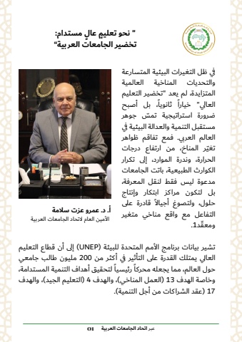 %u0639%u0627%u0644 %u0645%u0633%u062a%u062f%u0627%u0645: %u064d \%u064d%u062a%u062e%u0636%u064a%u0631 %u0627%u0644%u062c%u0627%u0645%u0639%u0627%u062a %u0627%u0644%u0639%u0631%u0628%u064a%u0629%u201d%u0639%u0628%u0631 %u0627%u062a%u062d%u0627%u062f %u0627%u0644%u062c%u0627%u0645%u0639%u0627%u062a %u0627%u0644%u0639%u0631%u0628%u064a%u0629 01%u0623. %u062f. %u0639%u0645%u0631%u0648 %u0639%u0632%u062a %u0633%u0644%u0627%u0645%u0629 %u0627%u0644%u0623%u0645%u064a%u0646 %u0627%u0644%u0639%u0627%u0645 %u0644%u0627%u062a%u062d%u0627%u062f %u0627%u0644%u062c%u0627%u0645%u0639%u0627%u062a %u0627%u0644%u0639%u0631%u0628%u064a%u0629%u0641%u064a %u0638%u0644 %u0627%u0644%u062a%u063a%u064a%u0631%u0627%u062a %u0627%u0644%u0628%u064a%u0626%u064a%u0629 %u0627%u0644%u0645%u062a%u0633%u0627%u0631%u0639%u0629 %u0648%u0627%u0644%u062a%u062d%u062f%u064a%u0627%u062a %u0627%u0644%u0645%u0646%u0627%u062e%u064a%u0629 %u0627%u0644%u0639%u0627%u0644%u0645%u064a%u0629 %u0627%u0644%u0645%u062a%u0632%u0627%u064a%u062f%u0629%u060c %u0644%u0645 %u064a%u0639%u062f \%u062a%u062e%u0636%u064a%u0631 %u0627%u0644%u062a%u0639%u0644%u064a%u0645 %u064b%u060c %u0628%u0644 %u0623%u0635%u0628%u062d %u0627%u0644%u0639%u0627%u0644%u064a\ %u062e%u064a%u0627%u0631%u0627%u064b %u062b%u0627%u0646%u0648%u064a%u0627%u0651 %u0636%u0631%u0648%u0631%u0629 %u0627%u0633%u062a%u0631%u0627%u062a%u064a%u062c%u064a%u0629 %u062a%u0645%u0633 %u062c%u0648%u0647%u0631 %u0645%u0633%u062a%u0642%u0628%u0644 %u0627%u0644%u062a%u0646%u0645%u064a%u0629 %u0648%u0627%u0644%u0639%u062f%u0627%u0644%u0629 %u0627%u0644%u0628%u064a%u0626%u064a%u0629 %u0641%u064a %u0627%u0644%u0639%u0627%u0644%u0645 %u0627%u0644%u0639%u0631%u0628%u064a. %u0641%u0645%u0639 %u062a%u0641%u0627%u0642%u0645 %u0638%u0648%u0627%u0647%u0631 %u0651%u0631 %u0627%u0644%u0645%u0646%u0627%u062e%u060c %u0645%u0646 %u0627%u0631%u062a%u0641%u0627%u0639 %u062f%u0631%u062c%u0627%u062a %u062a%u063a%u064a%u0627%u0644%u062d%u0631%u0627%u0631%u0629%u060c %u0648%u0646%u062f%u0631%u0629 %u0627%u0644%u0645%u0648%u0627%u0631%u062f%u060c %u0625%u0644%u0649 %u062a%u0643%u0631%u0627%u0631 %u0627%u0644%u0643%u0648%u0627%u0631%u062b %u0627%u0644%u0637%u0628%u064a%u0639%u064a%u0629%u060c %u0628%u0627%u062a%u062a %u0627%u0644%u062c%u0627%u0645%u0639%u0627%u062a %u0645%u062f%u0639%u0648%u0629 %u0644%u064a%u0633 %u0641%u0642%u0637 %u0644%u0646%u0642%u0644 %u0627%u0644%u0645%u0639%u0631%u0641%u0629%u060c %u0628%u0644 %u0644%u062a%u0643%u0648%u0646 %u0645%u0631%u0627%u0643%u0632 %u0627%u0628%u062a%u0643%u0627%u0631 %u0648%u0625%u0646%u062a%u0627%u062c %u062d%u0644%u0648%u0644%u060c %u0648%u0644%u062a%u0635%u0648%u063a %u0623%u062c%u064a%u0627%u0644%u0627%u064b %u0642%u0627%u062f%u0631%u0629 %u0639%u0644%u0649 %u0627%u0644%u062a%u0641%u0627%u0639%u0644 %u0645%u0639 %u0648%u0627%u0642%u0639 %u0645%u0646%u0627%u062e%u064a %u0645%u062a%u063a%u064a%u0631 %u0651 %u0648%u0645%u0639%u0642%u062f1.%u062a%u0634%u064a%u0631 %u0628%u064a%u0627%u0646%u0627%u062a %u0628%u0631%u0646%u0627%u0645%u062c %u0627%u0644%u0623%u0645%u0645 %u0627%u0644%u0645%u062a%u062d%u062f%u0629 %u0644%u0644%u0628%u064a%u0626%u0629 (UNEP (%u0625%u0644%u0649 %u0623%u0646 %u0642%u0637%u0627%u0639 %u0627%u0644%u062a%u0639%u0644%u064a%u0645 %u0627%u0644%u0639%u0627%u0644%u064a %u064a%u0645%u062a%u0644%u0643 %u0627%u0644%u0642%u062f%u0631%u0629 %u0639%u0644%u0649 %u0627%u0644%u062a%u0623%u062b%u064a%u0631 %u0641%u064a %u0623%u0643%u062b%u0631 %u0645%u0646 200 %u0645%u0644%u064a%u0648%u0646 %u0637%u0627%u0644%u0628 %u062c%u0627%u0645%u0639%u064a %u064b %u0644%u062a%u062d%u0642%u064a%u0642 %u0623%u0647%u062f%u0627%u0641 %u0627%u0644%u062a%u0646%u0645%u064a%u0629 %u0627%u0644%u0645%u0633%u062a%u062f%u0627%u0645%u0629%u060c %u064b %u0631%u0626%u064a%u0633%u064a%u0627%u062d%u0648%u0644 %u0627%u0644%u0639%u0627%u0644%u0645%u060c %u0645%u0645%u0627 %u064a%u062c%u0639%u0644%u0647 %u0645%u062d%u0631%u0643%u0627%u0648%u062e%u0627%u0635%u0629 %u0627%u0644%u0647%u062f%u0641 13) %u0627%u0644%u0639%u0645%u0644 %u0627%u0644%u0645%u0646%u0627%u062e%u064a)%u060c %u0648%u0627%u0644%u0647%u062f%u0641 4) %u0627%u0644%u062a%u0639%u0644%u064a%u0645 %u0627%u0644%u062c%u064a%u062f)%u060c %u0648%u0627%u0644%u0647%u062f%u0641 17) %u0639%u0642%u062f %u0627%u0644%u0634%u0631%u0627%u0643%u0627%u062a %u0645%u0646 %u0623%u062c%u0644 %u0627%u0644%u062a%u0646%u0645%u064a%u0629).