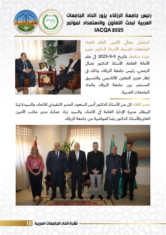 %u0631%u0626%u064a%u0633 %u062c%u0627%u0645%u0639%u0629 %u0627%u0644%u0631%u0632%u0642%u0627%u0621 %u064a%u0632%u0648%u0631 %u0627%u062a%u062d%u0627%u062f %u0627%u0644%u062c%u0627%u0645%u0639%u0627%u062a %u0627%u0644%u0639%u0631%u0628%u064a%u0629 %u0644%u0628%u062d%u062b %u0627%u0644%u062a%u0639%u0627%u0648%u0646 %u0648%u0627%u0644%u0627%u0633%u062a%u0639%u062f%u0627%u062f %u0644%u0645%u0624%u062a%u0645%u0631 IACQA 2025%u0646%u0634%u0631%u0629 %u0627%u062a%u062d%u0627%u062f %u0627%u0644%u062c%u0627%u0645%u0639%u0627%u062a %u0627%u0644%u0639%u0631%u0628%u064a%u0629 10%u062d%u0636%u0631 %u0627%u0644%u0644%u0642%u0627%u0621 %u0643%u0644 %u0645%u0646 %u0627%u0644%u0623%u0633%u062a%u0627%u0630 %u0627%u0644%u062f%u0643%u062a%u0648%u0631 %u0623%u0646%u0633 %u0627%u0644%u0633%u0639%u0648%u062f%u060c %u0627%u0644%u0645%u062f%u064a%u0631 %u0627%u0644%u062a%u0646%u0641%u064a%u0630%u064a %u0644%u0644%u0627%u062a%u062d%u0627%u062f%u060c %u0648%u0627%u0644%u0633%u064a%u062f%u0629 %u0644%u064a%u0646%u0627 %u0627%u0644%u0628%u064a%u0637%u0627%u0631%u060c %u0645%u062f%u064a%u0631%u0629 %u0627%u0644%u0625%u062f%u0627%u0631%u0629 %u0627%u0644%u0639%u0627%u0645%u0629 %u0641%u064a %u0627%u0644%u0627%u062a%u062d%u0627%u062f%u060c %u0648%u0627%u0644%u0633%u064a%u062f %u0632%u064a%u0627%u062f %u0639%u0645%u0627%u0631%u0629%u060c %u0645%u062f%u064a%u0631 %u0645%u0643%u062a%u0628 %u0627%u0644%u0623%u0645%u064a%u0646 %u0627%u0644%u0639%u0627%u0645.%u0648%u0627%u0644%u0623%u0633%u062a%u0627%u0630 %u0627%u0644%u062f%u0643%u062a%u0648%u0631 %u0631%u0636%u0627 %u0627%u0644%u0645%u0648%u0627%u0636%u064a%u0629 %u0645%u0646 %u062c%u0627%u0645%u0639%u0629 %u0627%u0644%u0632%u0631%u0642%u0627%u0621.%u0627%u0633%u062a%u0642%u0628%u0644 %u0645%u0639%u0627%u0644%u064a %u0627%u0644%u0623%u0645%u064a%u0646 %u0627%u0644%u0639%u0627%u0645 %u0644%u0627%u062a%u062d%u0627%u062f %u0627%u0644%u062c%u0627%u0645%u0639%u0627%u062a %u0627%u0644%u0639%u0631%u0628%u064a%u0629%u060c %u0627%u0644%u0623%u0633%u062a%u0627%u0630 %u0627%u0644%u062f%u0643%u062a%u0648%u0631 %u0639%u0645%u0631%u0648 %u0639%u0632%u062a %u0633%u0644%u0627%u0645%u0629%u060c %u0628%u062a%u0627%u0631%u064a%u062e 9-9-2025 %u0641%u064a %u0645%u0642%u0631 %u0627%u0644%u0623%u0645%u0627%u0646%u0629 %u0627%u0644%u0639%u0627%u0645%u0629%u060c %u0627%u0644%u0623%u0633%u062a%u0627%u0630 %u0627%u0644%u062f%u0643%u062a%u0648%u0631 %u0646%u0636%u0627%u0644 %u0627%u0644%u0631%u0645%u062d%u064a%u060c %u0631%u0626%u064a%u0633 %u062c%u0627%u0645%u0639%u0629 %u0627%u0644%u0632%u0631%u0642%u0627%u0621%u060c %u0648%u0630%u0644%u0643 %u0641%u064a %u0625%u0637%u0627%u0631 %u062a%u0639%u0632%u064a%u0632 %u0627%u0644%u062a%u0639%u0627%u0648%u0646 %u0627%u0644%u0623%u0643%u0627%u062f%u064a%u0645%u064a %u0648%u0627%u0644%u062a%u0646%u0633%u064a%u0642 %u0627%u0644%u0645%u0633%u062a%u0645%u0631 %u0628%u064a%u0646 %u062c%u0627%u0645%u0639%u0629 %u0627%u0644%u0632%u0631%u0642%u0627%u0621 %u0648%u0627%u062a%u062d%u0627%u062f %u0627%u0644%u062c%u0627%u0645%u0639%u0627%u062a %u0627%u0644%u0639%u0631%u0628%u064a%u0629.