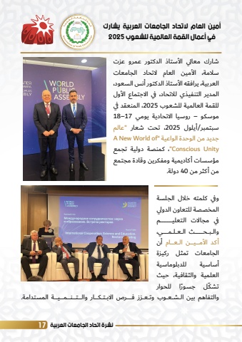 %u0623%u0645%u064a%u0646 %u0627%u0644%u0639%u0627%u0645 %u0644%u0627%u062a%u062d%u0627%u062f %u0627%u0644%u062c%u0627%u0645%u0639%u0627%u062a %u0627%u0644%u0639%u0631%u0628%u064a%u0629 %u064a%u0634%u0627%u0631%u0643 %u0641%u064a %u0623%u0639%u0645%u0627%u0644 %u0627%u0644%u0642%u0645%u0629 %u0627%u0644%u0639%u0627%u0644%u0645%u064a%u0629 %u0644%u0644%u0634%u0639%u0648%u0628 2025%u0646%u0634%u0631%u0629 %u0627%u062a%u062d%u0627%u062f %u0627%u0644%u062c%u0627%u0645%u0639%u0627%u062a %u0627%u0644%u0639%u0631%u0628%u064a%u0629 17%u0634%u0627%u0631%u0643 %u0645%u0639%u0627%u0644%u064a %u0627%u0644%u0623%u0633%u062a%u0627%u0630 %u0627%u0644%u062f%u0643%u062a%u0648%u0631 %u0639%u0645%u0631%u0648 %u0639%u0632%u062a %u0633%u0644%u0627%u0645%u0629%u060c %u0627%u0644%u0623%u0645%u064a%u0646 %u0627%u0644%u0639%u0627%u0645 %u0644%u0627%u062a%u062d%u0627%u062f %u0627%u0644%u062c%u0627%u0645%u0639%u0627%u062a %u0627%u0644%u0639%u0631%u0628%u064a%u0629%u060c %u064a%u0631%u0627%u0641%u0642%u0647 %u0627%u0644%u0623%u0633%u062a%u0627%u0630 %u0627%u0644%u062f%u0643%u062a%u0648%u0631 %u0623%u0646%u0633 %u0627%u0644%u0633%u0639%u0648%u062f%u060c %u0627%u0644%u0645%u062f%u064a%u0631 %u0627%u0644%u062a%u0646%u0641%u064a%u0630%u064a %u0644%u0644%u0627%u062a%u062d%u0627%u062f%u060c %u0641%u064a %u0627%u0644%u0627%u062c%u062a%u0645%u0627%u0639 %u0627%u0644%u0623%u0648%u0644 %u0644%u0644%u0642%u0645%u0629 %u0627%u0644%u0639%u0627%u0644%u0645%u064a%u0629 %u0644%u0644%u0634%u0639%u0648%u0628 2025 %u060c%u0627%u0644%u0645%u0646%u0639%u0642%u062f %u0641%u064a %u0645%u0648%u0633%u0643%u0648 %u2013 %u0631%u0648%u0633%u064a%u0627 %u0627%u0644%u0627%u062a%u062d%u0627%u062f%u064a%u0629 %u064a%u0648%u0645%u064a 17%u201318%u0633%u0628%u062a%u0645%u0628%u0631/%u0623%u064a%u0644%u0648%u0644 2025 %u060c%u062a%u062d%u062a %u0634%u0639%u0627%u0631 \%u0639%u0627%u0644%u0645 %u062c%u062f%u064a%u062f %u0645%u0646 %u0627%u0644%u0648%u062d%u062f%u0629 %u0627%u0644%u0648%u0627%u0639%u064a%u0629 %u201dof World New AUnity Conscious %u060c%u201d%u0643%u0645%u0646%u0635%u0629 %u062f%u0648%u0644%u064a%u0629 %u062a%u062c%u0645%u0639 %u0645%u0624%u0633%u0633%u0627%u062a %u0623%u0643%u0627%u062f%u064a%u0645%u064a%u0629 %u0648%u0645%u0641%u0643%u0631%u064a%u0646 %u0648%u0642%u0627%u062f%u0629 %u0645%u062c%u062a%u0645%u0639 %u0645%u0646 %u0623%u0643%u062b%u0631 %u0645%u0646 40 %u062f%u0648%u0644%u0629.%u0648%u0641%u064a %u0643%u0644%u0645%u062a%u0647 %u062e%u0644%u0627%u0644 %u0627%u0644%u062c%u0644%u0633%u0629 %u0627%u0644%u0645%u062e%u0635%u0635%u0629 %u0644%u0644%u062a%u0639%u0627%u0648%u0646 %u0627%u0644%u062f%u0648%u0644%u064a %u0641%u064a %u0645%u062c%u0627%u0644%u0627%u062a %u0627%u0644%u0640%u062a%u0639%u0644%u064a%u0640%u0640%u0640%u0640%u0640%u0640%u0640%u0640%u0640%u0640%u0640%u0640%u0640%u0640%u0640%u0640%u0640%u0640%u0640%u0640%u0640%u0645 %u0648%u0627%u0644%u0640%u0640%u0640%u0628%u0640%u0640%u0640%u062d%u0640%u0640%u0640%u0640%u0640%u0640%u0640%u0640%u0640%u0640%u0640%u0640%u0640%u0640%u0640%u062b %u0627%u0644%u0640%u0640%u0640%u0639%u0640%u0640%u0640%u0644%u0640%u0640%u0640%u0645%u0640%u0640%u0640%u0640%u0640%u0640%u0640%u0640%u0640%u064a%u060c%u0623%u0643%u062f %u0627%u0644%u0623%u0645%u0640%u0640%u0640%u0640%u0640%u0640%u064a%u0640%u0640%u0640%u0640%u0640%u0640%u0646 %u0627%u0644%u0640%u0640%u0640%u0639%u0640%u0640%u0640%u0640%u0640%u0640%u0627%u0645 %u0623%u0646 %u0627%u0644%u062c%u0627%u0645%u0639%u0627%u062a %u062a%u0645%u062b%u0644 %u0631%u0643%u064a%u0632%u0629 %u0623%u0633%u0627%u0633%u064a%u0629 %u0644%u0644%u062f%u0628%u0644%u0648%u0645%u0627%u0633%u064a%u0629 %u0627%u0644%u0639%u0644%u0645%u064a%u0629 %u0648%u0627%u0644%u062b%u0642%u0627%u0641%u064a%u0629%u060c %u062d%u064a%u062b %u062a%u0634%u0643%u0651 %u064b %u0644 %u062c%u0633%u0648%u0631%u0627 %u0644%u0644%u062d%u0648%u0627%u0631 %u0648%u0627%u0644%u062a%u0641%u0627%u0647%u0645 %u0628%u064a%u0646 %u0627%u0644%u0640%u0640%u0640%u0634%u0640%u0640%u0640%u0639%u0640%u0640%u0640%u0648%u0628 %u0648%u062a%u0640%u0640%u0640%u0639%u0640%u0640%u0640%u0632%u0632 %u0641%u0640%u0640%u0640%u0640%u0640%u0640%u0640%u0640%u0640%u0631%u0635 %u0627%u0644%u0627%u0628%u0640%u0640%u0640%u062a%u0640%u0640%u0640%u0643%u0640%u0640%u0640%u0640%u0640%u0640%u0627%u0631 %u0648%u0627%u0644%u0640%u0640%u0640%u0640%u0640%u0640%u062a%u0640%u0640%u0640%u0640%u0640%u0640%u0646%u0640%u0640%u0640%u0640%u0640%u0640%u0645%u0640%u0640%u0640%u0640%u0640%u0640%u064a%u0640%u0640%u0640%u0640%u0640%u0640%u0629 %u0627%u0644%u0645%u0633%u062a%u062f%u0627%u0645%u0629.