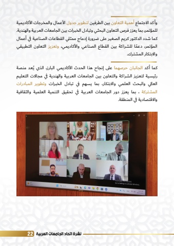 %u0646%u0634%u0631%u0629 %u0627%u062a%u062d%u0627%u062f %u0627%u0644%u062c%u0627%u0645%u0639%u0627%u062a %u0627%u0644%u0639%u0631%u0628%u064a%u0629 22%u0648%u0623%u0643%u062f %u0627%u0644%u0627%u062c%u062a%u0645%u0627%u0639 %u0623%u0647%u0645%u064a%u0629 %u0627%u0644%u062a%u0639%u0627%u0648%u0646 %u0628%u064a%u0646 %u0627%u0644%u0637%u0631%u0641%u064a%u0646 %u0644%u062a%u0637%u0648%u064a%u0631 %u062c%u062f%u0648%u0644 %u0627%u0644%u0623%u0639%u0645%u0627%u0644 %u0648%u0627%u0644%u0645%u062e%u0631%u062c%u0627%u062a %u0627%u0644%u0623%u0643%u0627%u062f%u064a%u0645%u064a%u0629 %u0644%u0644%u0645%u0624%u062a%u0645%u0631%u060c %u0628%u0645%u0627 %u064a%u0639%u0632%u0632 %u0641%u0631%u0635 %u0627%u0644%u062a%u0639%u0627%u0648%u0646 %u0627%u0644%u0628%u062d%u062b%u064a %u0648%u062a%u0628%u0627%u062f%u0644 %u0627%u0644%u062e%u0628%u0631%u0627%u062a %u0628%u064a%u0646 %u0627%u0644%u062c%u0627%u0645%u0639%u0627%u062a %u0627%u0644%u0639%u0631%u0628%u064a%u0629 %u0648%u0627%u0644%u0647%u0646%u062f%u064a%u0629. %u0643%u0645%u0627 %u0634%u062f%u062f %u0627%u0644%u062f%u0643%u062a%u0648%u0631 %u0643%u0631%u064a%u0645 %u0627%u0644%u0635%u063a%u064a%u0631 %u0639%u0644%u0649 %u0636%u0631%u0648%u0631%u0629 %u0625%u062f%u0645%u0627%u062c %u0645%u0645%u062b%u0644%u064a %u0627%u0644%u0642%u0637%u0627%u0639%u0627%u062a %u0627%u0644%u0635%u0646%u0627%u0639%u064a%u0629 %u0641%u064a %u0623%u0639%u0645%u0627%u0644 %u064b %u0627%u0644%u0645%u0624%u062a%u0645%u0631%u060c %u062f%u0639%u0645%u0627 %u0644%u0644%u0634%u0631%u0627%u0643%u0629 %u0628%u064a%u0646 %u0627%u0644%u0642%u0637%u0627%u0639 %u0627%u0644%u0635%u0646%u0627%u0639%u064a %u0648%u0627%u0644%u0623%u0643%u0627%u062f%u064a%u0645%u064a%u060c %u0648%u062a%u0639%u0632%u064a%u0632 %u0627%u0644%u062a%u0639%u0627%u0648%u0646 %u0627%u0644%u062a%u0637%u0628%u064a%u0642%u064a %u0648%u0627%u0644%u0627%u0628%u062a%u0643%u0627%u0631 %u0627%u0644%u0645%u0634%u062a%u0631%u0643.%u0643%u0645%u0627 %u0623%u0643%u062f %u0627%u0644%u062c%u0627%u0646%u0628%u0627%u0646 %u062d%u0631%u0635%u0647%u0645%u0627 %u0639%u0644 %u064f %u0649 %u0625%u0646%u062c%u0627%u062d %u0647%u0630%u0627 %u0627%u0644%u062d%u062f%u062b %u0627%u0644%u0623%u0643%u0627%u062f%u064a%u0645%u064a %u0627%u0644%u0628%u0627%u0631%u0632%u060c %u0627%u0644%u0630%u064a %u064a%u0639%u062f %u0645%u0646%u0635%u0629 %u0631%u0626%u064a%u0633%u064a%u0629 %u0644%u062a%u0639%u0632%u064a%u0632 %u0627%u0644%u0634%u0631%u0627%u0643%u0629 %u0648%u0627%u0644%u062a%u0639%u0627%u0648%u0646 %u0628%u064a%u0646 %u0627%u0644%u062c%u0627%u0645%u0639%u0627%u062a %u0627%u0644%u0639%u0631%u0628%u064a%u0629 %u0648%u0627%u0644%u0647%u0646%u062f%u064a%u0629 %u0641%u064a %u0645%u062c%u0627%u0644%u0627%u062a %u0627%u0644%u062a%u0639%u0644%u064a%u0645 %u0627%u0644%u0639%u0627%u0644%u064a %u0648%u0627%u0644%u0628%u062d%u062b %u0627%u0644%u0639%u0644%u0645%u064a %u0648%u0627%u0644%u0627%u0628%u062a%u0643%u0627%u0631%u060c %u0628%u0645%u0627 %u064a%u0633%u0647%u0645 %u0641%u064a %u062a%u0628%u0627%u062f%u0644 %u0627%u0644%u062e%u0628%u0631%u0627%u062a %u0648%u062a%u0637%u0648%u064a%u0631 %u0627%u0644%u0645%u0628%u0627%u062f%u0631%u0627%u062a %u0627%u0644%u0645%u0634%u062a%u0631%u0643%u0629 %u060c %u0628%u0645%u0627 %u064a%u0639%u0632%u0632 %u062f%u0648%u0631 %u0627%u0644%u062c%u0627%u0645%u0639%u0627%u062a %u0627%u0644%u0639%u0631%u0628%u064a%u0629 %u0641%u064a %u062a%u062d%u0642%u064a%u0642 %u0627%u0644%u062a%u0646%u0645%u064a%u0629 %u0627%u0644%u0639%u0644%u0645%u064a%u0629 %u0648%u0627%u0644%u062b%u0642%u0627%u0641%u064a%u0629 %u0648%u0627%u0644%u0627%u0642%u062a%u0635%u0627%u062f%u064a%u0629 %u0641%u064a %u0627%u0644%u0645%u0646%u0637%u0642%u0629.