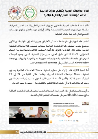 %u0646%u0634%u0631%u0629 %u0627%u062a%u062d%u0627%u062f %u0627%u0644%u062c%u0627%u0645%u0639%u0627%u062a %u0627%u0644%u0639%u0631%u0628%u064a%u0629 23%u0651%u0646%u0638%u0645 %u0627%u062a%u062d%u0627%u062f %u0627%u0644%u062c%u0627%u0645%u0639%u0627%u062a %u0627%u0644%u0639%u0631%u0628%u064a%u0629%u060c %u0628%u0627%u0644%u062a%u0639%u0627%u0648%u0646 %u0645%u0639 %u0648%u0632%u0627%u0631%u0629 %u0627%u0644%u062a%u0639%u0644%u064a%u0645 %u0627%u0644%u0639%u0627%u0644%u064a %u0648%u0627%u0644%u0628%u062d%u062b %u0627%u0644%u0639%u0644%u0645%u064a %u0627%u0644%u0639%u0631%u0627%u0642%u064a%u0629%u060c %u0633%u0644%u0633%u0644%u0629 %u0645%u0646 %u0627%u0644%u062f%u0648%u0631%u0627%u062a %u0627%u0644%u062a%u062f%u0631%u064a%u0628%u064a%u0629 %u0627%u0644%u0645%u062a%u062e%u0635%u0635%u0629%u060c %u0648%u0630%u0644%u0643 %u0641%u064a %u0625%u0637%u0627%u0631 %u062c%u0647%u0648%u062f%u0647 %u0644%u062f%u0639%u0645 %u0648%u062a%u0637%u0648%u064a%u0631 %u0645%u0624%u0633%u0633%u0627%u062a %u0627%u0644%u062a%u0639%u0644%u064a%u0645 %u0627%u0644%u0639%u0627%u0644%u064a %u0627%u0644%u0639%u0631%u0627%u0642%u064a%u0629 %u0648%u062a%u0639%u0632%u064a%u0632 %u0643%u0641%u0627%u0621%u062a%u0647%u0627.%u064f%u0639%u0642%u062f%u062a %u0647%u0630%u0647 %u0627%u0644%u062f%u0648%u0631%u0627%u062a %u0641%u064a %u0645%u0642%u0631 %u062c%u0627%u0645%u0639%u0629 %u0643%u0644%u0643%u0627%u0645%u0634 %u0627%u0644%u0623%u0647%u0644%u064a%u0629 %u0641%u064a %u062c%u0645%u0647%u0648%u0631%u064a%u0629 %u0627%u0644%u0639%u0631%u0627%u0642. %u062a%u0646%u0627%u0648%u0644%u062a %u0627%u0644%u062f%u0648%u0631%u0629 %u0627%u0644%u0623%u0648%u0644%u0649 %u0645%u0648%u0636%u0648%u0639 %u0645%u0639%u0627%u064a%u064a%u0631 %u062a%u0635%u0646%u064a%u0641 QS %u0644%u0644%u062c%u0627%u0645%u0639%u0627%u062a %u0627%u0644%u0639%u0627%u0644%u0645%u064a%u0629 %u0648%u0645%u0639%u0627%u064a%u064a%u0631 %u062a%u0635%u0646%u064a%u0641 QS %u0644%u062c%u0627%u0645%u0639%u0627%u062a %u0627%u0644%u0645%u0646%u0637%u0642%u0629 %u0627%u0644%u0639%u0631%u0628%u064a%u0629%u060c %u0648%u0630%u0644%u0643 %u062e%u0644%u0627%u0644 %u0627%u0644%u0641%u062a%u0631%u0629 %u0645%u0646 22 %u0625%u0644%u0649 23 %u0623%u064a%u0644%u0648%u0644/%u0633%u0628%u062a%u0645%u0628%u0631 2025 . %u0651 %u0648%u0642%u062f%u0645%u0647%u0627 %u0646%u062e%u0628%u0629 %u0645%u0646 %u0627%u0644%u062e%u0628%u0631%u0627%u0621 %u0651%u0632%u064a%u0646: %u0627%u0644%u0623%u0633%u062a%u0627%u0630 %u0627%u0644%u062f%u0643%u062a%u0648%u0631 %u0637%u0627%u0631%u0642 %u0627%u0644%u062e%u0648%u0644%u064a%u060c %u0645%u062f%u064a%u0631 %u0645%u0631%u0643%u0632 %u0627%u0644%u062a%u0635%u0646%u064a%u0641 %u0627%u0644%u062f%u0648%u0644%u064a %u0648%u0645%u062f%u064a%u0631 %u0627%u0644%u0648%u062d%u062f%u0627%u062a %u0627%u0644%u0645%u062a%u0645%u064a%u0627%u0644%u0645%u0631%u0643%u0632%u064a%u0629 %u0641%u064a %u062c%u0627%u0645%u0639%u0629 %u0627%u0644%u062f%u0644%u062a%u0627 %u0644%u0644%u0639%u0644%u0648%u0645 %u0648%u0627%u0644%u062a%u0643%u0646%u0648%u0644%u0648%u062c%u064a%u0627 %u2013 %u062c%u0645%u0647%u0648%u0631%u064a%u0629 %u0645%u0635%u0631 %u0627%u0644%u0639%u0631%u0628%u064a%u0629%u060c %u0648%u0627%u0644%u0628%u0631%u0648%u0641%u064a%u0633%u0648%u0631 Sergi.QS Quacquarelli Symonds %u0641%u064a %u0627%u0644%u0625%u0642%u0644%u064a%u0645%u064a %u0627%u0644%u0645%u062f%u064a%u0631%u060c Khristoliubov%u0623%u0645%u0627 %u0627%u0644%u062f%u0648%u0631%u0629 %u0627%u0644%u062b%u0627%u0646%u064a%u0629%u060c %u0641%u0642%u062f %u0631%u0643%u0651%u0632%u062a %u0639%u0644%u0649 %u0645%u0639%u0627%u064a%u064a%u0631 %u062a%u0635%u0646%u064a%u0641 Times %u0644%u0644%u062c%u0627%u0645%u0639%u0627%u062a %u0627%u0644%u0639%u0627%u0644%u0645%u064a%u0629 %u0648%u0645%u0639%u0627%u064a%u064a%u0631 %u062a%u0635%u0646%u064a%u0641 Times %u064f %u0644%u062c%u0627%u0645%u0639%u0627%u062a %u0627%u0644%u0645%u0646%u0637%u0642%u0629 %u0627%u0644%u0639%u0631%u0628%u064a%u0629%u060c %u0648%u0639%u0642%u062f%u062a %u062e%u0644%u0627%u0644 %u0627%u0644%u0641%u062a%u0631%u0629 %u0645%u0646 24 %u0625%u0644%u0649 25%u0623%u064a%u0644%u0648%u0644/%u0633%u0628%u062a%u0645%u0628%u0631 2025 %u060c %u0651 %u0648%u0642%u062f%u0645%u0647%u0627 %u0627%u0644%u0623%u0633%u062a%u0627%u0630 %u0627%u0644%u062f%u0643%u062a%u0648%u0631 %u0637%u0627%u0631%u0642 %u0627%u0644%u062e%u0648%u0644%u064a%u060c %u0645%u062f%u064a%u0631 %u0645%u0631%u0643%u0632 %u0627%u0644%u062a%u0635%u0646%u064a%u0641 %u0627%u0644%u062f%u0648%u0644%u064a %u0648%u0645%u062f%u064a%u0631 %u0627%u0644%u0648%u062d%u062f%u0627%u062a %u0627%u0644%u0645%u0631%u0643%u0632%u064a%u0629 %u0641%u064a %u062c%u0627%u0645%u0639%u0629 %u0627%u0644%u062f%u0644%u062a%u0627 %u0644%u0644%u0639%u0644%u0648%u0645 %u0648%u0627%u0644%u062a%u0643%u0646%u0648%u0644%u0648%u062c%u064a%u0627 %u2013 %u062c%u0645%u0647%u0648%u0631%u064a%u0629 %u0645%u0635%u0631 %u0627%u0644%u0639%u0631%u0628%u064a%u0629.%u0648%u062a%u0623%u062a%u064a %u0647%u0630%u0647 %u0627%u0644%u0645%u0628%u0627%u062f%u0631%u0627%u062a %u0641%u064a %u0625%u0637%u0627%u0631 %u0627%u0644%u062a%u0632%u0627%u0645 %u0627%u062a%u062d%u0627%u062f %u0627%u0644%u062c%u0627%u0645%u0639%u0627%u062a %u0627%u0644%u0639%u0631%u0628%u064a%u0629 %u0628%u062a%u0639%u0632%u064a%u0632 %u0642%u062f%u0631%u0627%u062a %u0627%u0644%u062c%u0627%u0645%u0639%u0627%u062a %u0627%u0644%u0639%u0631%u0627%u0642%u064a%u0629 %u0648%u0631%u0641%u0639 %u0645%u0633%u062a%u0648%u0649 %u0627%u0644%u0623%u062f%u0627%u0621 %u0627%u0644%u0623%u0643%u0627%u062f%u064a%u0645%u064a %u0641%u064a %u0645%u0624%u0633%u0633%u0627%u062a %u0627%u0644%u062a%u0639%u0644%u064a%u0645 %u0627%u0644%u0639%u0627%u0644%u064a %u0627%u0644%u0639%u0631%u0628%u064a%u0629.