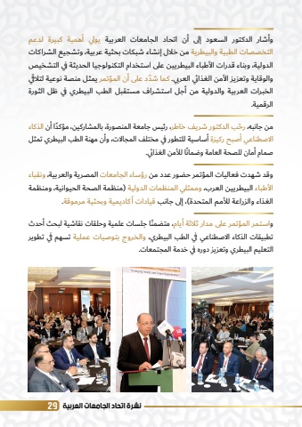 %u0646%u0634%u0631%u0629 %u0627%u062a%u062d%u0627%u062f %u0627%u0644%u062c%u0627%u0645%u0639%u0627%u062a %u0627%u0644%u0639%u0631%u0628%u064a%u0629 29%u0648%u0623%u0634%u0627%u0631 %u0627%u0644%u062f%u0643%u062a%u0648%u0631 %u0627%u0644%u0633%u0639%u0648%u062f %u0625%u0644%u0649 %u0623%u0646 %u0627%u062a%u062d%u0627%u062f %u0627%u0644%u062c%u0627%u0645%u0639%u0627%u062a %u0627%u0644%u0639%u0631%u0628%u064a%u0629 %u064a%u0648%u0644%u064a %u0623%u0647%u0645%u064a%u0629 %u0643%u0628%u064a%u0631%u0629 %u0644%u062f%u0639%u0645 %u0627%u0644%u062a%u062e%u0635%u0635%u0627%u062a %u0627%u0644%u0637%u0628%u064a%u0629 %u0648%u0627%u0644%u0628%u064a%u0637%u0631%u064a%u0629 %u0645%u0646 %u062e%u0644%u0627%u0644 %u0625%u0646%u0634%u0627%u0621 %u0634%u0628%u0643%u0627%u062a %u0628%u062d%u062b%u064a%u0629 %u0639%u0631%u0628%u064a%u0629%u060c %u0648%u062a%u0634%u062c%u064a%u0639 %u0627%u0644%u0634%u0631%u0627%u0643%u0627%u062a %u0627%u0644%u062f%u0648%u0644%u064a%u0629%u060c %u0648%u0628%u0646%u0627%u0621 %u0642%u062f%u0631%u0627%u062a %u0627%u0644%u0623%u0637%u0628%u0627%u0621 %u0627%u0644%u0628%u064a%u0637%u0631%u064a%u064a%u0646 %u0639%u0644%u0649 %u0627%u0633%u062a%u062e%u062f%u0627%u0645 %u0627%u0644%u062a%u0643%u0646%u0648%u0644%u0648%u062c%u064a%u0627 %u0627%u0644%u062d%u062f%u064a%u062b%u0629 %u0641%u064a %u0627%u0644%u062a%u0634%u062e%u064a%u0635 %u0648%u0627%u0644%u0648%u0642%u0627%u064a%u0629 %u0648%u062a%u0639%u0632%u064a%u0632 %u0627%u0644%u0623%u0645%u0646 %u0627%u0644%u063a%u0630%u0627%u0626%u064a %u0627%u0644%u0639%u0631%u0628%u064a. %u0651 %u0643%u0645%u0627 %u0634%u062f%u062f %u0639%u0644%u0649 %u0623%u0646 %u0627%u0644%u0645%u0624%u062a%u0645%u0631 %u064a%u0645%u062b%u0644 %u0645%u0646%u0635%u0629 %u0646%u0648%u0639%u064a%u0629 %u0644%u062a%u0644%u0627%u0642%u064a %u0627%u0644%u062e%u0628%u0631%u0627%u062a %u0627%u0644%u0639%u0631%u0628%u064a%u0629 %u0648%u0627%u0644%u062f%u0648%u0644%u064a%u0629 %u0645%u0646 %u0623%u062c%u0644 %u0627%u0633%u062a%u0634%u0631%u0627%u0641 %u0645%u0633%u062a%u0642%u0628%u0644 %u0627%u0644%u0637%u0628 %u0627%u0644%u0628%u064a%u0637%u0631%u064a %u0641%u064a %u0638%u0644 %u0627%u0644%u062b%u0648%u0631%u0629 %u0627%u0644%u0631%u0642%u0645%u064a%u0629.%u0645%u0646 %u062c%u0627%u0646%u0628%u0647%u060c %u0651 %u0631%u062d%u0628 %u0627%u0644%u062f%u0643%u062a%u0648%u0631 %u0634%u0631%u064a%u0641 %u062e%u0627%u0637%u0631 %u064b %u060c %u0631%u0626%u064a%u0633 %u062c%u0627%u0645%u0639%u0629 %u0627%u0644%u0645%u0646%u0635%u0648%u0631%u0629%u060c %u0628%u0627%u0644%u0645%u0634%u0627%u0631%u0643%u064a%u0646%u060c %u0645%u0624%u0643%u062f%u0627 %u0623%u0646 %u0627%u0644%u0630%u0643%u0627%u0621 %u0627%u0644%u0627%u0635%u0637%u0646%u0627%u0639%u064a %u0623%u0635%u0628%u062d %u0631%u0643%u064a%u0632%u0629 %u0623%u0633%u0627%u0633%u064a%u0629 %u0644%u0644%u062a%u0637%u0648%u0631 %u0641%u064a %u0645%u062e%u062a%u0644%u0641 %u0627%u0644%u0645%u062c%u0627%u0644%u0627%u062a%u060c %u0648%u0623%u0646 %u0645%u0647%u0646%u0629 %u0627%u0644%u0637%u0628 %u0627%u0644%u0628%u064a%u0637%u0631%u064a %u062a%u0645%u062b%u0644 %u064b%u0627 %u0644%u0644%u0623%u0645%u0646 %u0627%u0644%u063a%u0630%u0627%u0626%u064a.%u0635%u0645%u0627%u0645 %u0623%u0645%u0627%u0646 %u0644%u0644%u0635%u062d%u0629 %u0627%u0644%u0639%u0627%u0645%u0629 %u0648%u0636%u0645%u0627%u0646%u0648%u0642%u062f %u0634%u0647%u062f%u062a %u0641%u0639%u0627%u0644%u064a%u0627%u062a %u0627%u0644%u0645%u0624%u062a%u0645%u0631 %u062d%u0636%u0648%u0631 %u0639%u062f%u062f %u0645%u0646 %u0631%u0624%u0633%u0627%u0621 %u0627%u0644%u062c%u0627%u0645%u0639%u0627%u062a %u0627%u0644%u0645%u0635%u0631%u064a%u0629 %u0648%u0627%u0644%u0639%u0631%u0628%u064a%u0629%u060c %u0648%u0646%u0642%u0628%u0627%u0621 %u0627%u0644%u0623%u0637%u0628%u0627%u0621 %u0627%u0644%u0628%u064a%u0637%u0631%u064a%u064a%u0646 %u0627%u0644%u0639%u0631%u0628%u060c %u0648%u0645%u0645%u062b%u0644%u064a %u0627%u0644%u0645%u0646%u0638%u0645%u0627%u062a %u0627%u0644%u062f%u0648%u0644%u064a%u0629 (%u0645%u0646%u0638%u0645%u0629 %u0627%u0644%u0635%u062d%u0629 %u0627%u0644%u062d%u064a%u0648%u0627%u0646%u064a%u0629%u060c %u0648%u0645%u0646%u0638%u0645%u0629 %u0627%u0644%u063a%u0630%u0627%u0621 %u0648%u0627%u0644%u0632%u0631%u0627%u0639%u0629 %u0644%u0644%u0623%u0645%u0645 %u0627%u0644%u0645%u062a%u062d%u062f%u0629)%u060c %u0625%u0644%u0649 %u062c%u0627%u0646%u0628 %u0642%u064a%u0627%u062f%u0627%u062a %u0623%u0643%u0627%u062f%u064a%u0645%u064a%u0629 %u0648%u0628%u062d%u062b%u064a%u0629 %u0645%u0631%u0645%u0648%u0642%u0629.%u0648%u0627%u0633%u062a%u0645%u0631 %u0627%u0644%u0645%u0624%u062a%u0645%u0631 %u0639%u0644%u0649 %u0645%u062f%u0627%u0631 %u062b%u0644%u0627%u062b%u0629 %u0623%u064a%u0627%u0645 %u064b %u060c %u0645%u062a%u0636%u0645%u0646%u0627 %u062c%u0644%u0633%u0627%u062a %u0639%u0644%u0645%u064a%u0629 %u0648%u062d%u0644%u0642%u0627%u062a %u0646%u0642%u0627%u0634%u064a%u0629 %u0644%u0628%u062d%u062b %u0623%u062d%u062f%u062b %u062a%u0637%u0628%u064a%u0642%u0627%u062a %u0627%u0644%u0630%u0643%u0627%u0621 %u0627%u0644%u0627%u0635%u0637%u0646%u0627%u0639%u064a %u0641%u064a %u0627%u0644%u0637%u0628 %u0627%u0644%u0628%u064a%u0637%u0631%u064a%u060c %u0648%u0627%u0644%u062e%u0631%u0648%u062c %u0628%u062a%u0648%u0635%u064a%u0627%u062a %u0639%u0645%u0644%u064a%u0629 %u062a%u0633%u0647%u0645 %u0641%u064a %u062a%u0637%u0648%u064a%u0631 %u0627%u0644%u062a%u0639%u0644%u064a%u0645 %u0627%u0644%u0628%u064a%u0637%u0631%u064a %u0648%u062a%u0639%u0632%u064a%u0632 %u062f%u0648%u0631%u0647 %u0641%u064a %u062e%u062f%u0645%u0629 %u0627%u0644%u0645%u062c%u062a%u0645%u0639%u0627%u062a.
