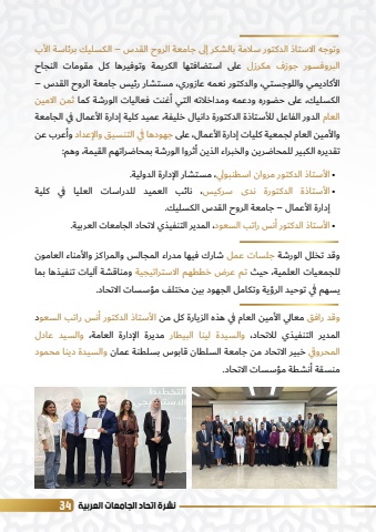 %u0646%u0634%u0631%u0629 %u0627%u062a%u062d%u0627%u062f %u0627%u0644%u062c%u0627%u0645%u0639%u0627%u062a %u0627%u0644%u0639%u0631%u0628%u064a%u0629 34%u0648%u062a%u0648%u062c%u0647 %u0627%u0644%u0627%u0633%u062a%u0627%u0630 %u0627%u0644%u062f%u0643%u062a%u0648%u0631 %u0633%u0644%u0627%u0645%u0629 %u0628%u0627%u0644%u0634%u0643%u0631 %u0625%u0644%u0649 %u062c%u0627%u0645%u0639%u0629 %u0627%u0644%u0631%u0648%u062d %u0627%u0644%u0642%u062f%u0633 %u2013 %u0627%u0644%u0643%u0633%u0644%u064a%u0643 %u0628%u0631%u0626%u0627%u0633%u0629 %u0627%u0644%u0623%u0628 %u0627%u0644%u0628%u0631%u0648%u0641%u0633%u0648%u0631 %u062c%u0648%u0632%u0641 %u0645%u0643%u0631%u0632%u0644 %u0639%u0644%u0649 %u0627%u0633%u062a%u0636%u0627%u0641%u062a%u0647%u0627 %u0627%u0644%u0643%u0631%u064a%u0645%u0629 %u0648%u062a%u0648%u0641%u064a%u0631%u0647%u0627 %u0643%u0644 %u0645%u0642%u0648%u0645%u0627%u062a %u0627%u0644%u0646%u062c%u0627%u062d %u0627%u0644%u0623%u0643%u0627%u062f%u064a%u0645%u064a %u0648%u0627%u0644%u0644%u0648%u062c%u0633%u062a%u064a%u060c %u0648%u0627%u0644%u062f%u0643%u062a%u0648%u0631 %u0646%u0639%u0645%u0647 %u0639%u0627%u0632%u0648%u0631%u064a%u060c %u0645%u0633%u062a%u0634%u0627%u0631 %u0631%u0626%u064a%u0633 %u062c%u0627%u0645%u0639%u0629 %u0627%u0644%u0631%u0648%u062d %u0627%u0644%u0642%u062f%u0633 %u2013 %u0627%u0644%u0643%u0633%u0644%u064a%u0643%u060c %u0639%u0644%u0649 %u062d%u0636%u0648%u0631%u0647 %u0648%u062f%u0639%u0645%u0647 %u0648%u0645%u062f%u0627%u062e%u0644%u0627%u062a%u0647 %u0627%u0644%u062a%u064a %u0623%u063a%u0646%u062a %u0641%u0639%u0627%u0644%u064a%u0627%u062a %u0627%u0644%u0648%u0631%u0634%u0629 %u0643%u0645%u0627 %u062b%u0645%u0646 %u0627%u0644%u0627%u0645%u064a%u0646 %u0627%u0644%u0639%u0627%u0645 %u0627%u0644%u062f%u0648%u0631 %u0627%u0644%u0641%u0627%u0639%u0644 %u0644%u0644%u0623%u0633%u062a%u0627%u0630%u0629 %u0627%u0644%u062f%u0643%u062a%u0648%u0631%u0629 %u062f%u0627%u0646%u064a%u0627%u0644 %u062e%u0644%u064a%u0641%u0629%u060c %u0639%u0645%u064a%u062f %u0643%u0644%u064a%u0629 %u0625%u062f%u0627%u0631%u0629 %u0627%u0644%u0623%u0639%u0645%u0627%u0644 %u0641%u064a %u0627%u0644%u062c%u0627%u0645%u0639%u0629 %u0648%u0627%u0644%u0623%u0645%u064a%u0646 %u0627%u0644%u0639%u0627%u0645 %u0644%u062c%u0645%u0639%u064a%u0629 %u0643%u0644%u064a%u0627%u062a %u0625%u062f%u0627%u0631%u0629 %u0627%u0644%u0623%u0639%u0645%u0627%u0644%u060c %u0639%u0644%u0649 %u062c%u0647%u0648%u062f%u0647%u0627 %u0641%u064a %u0627%u0644%u062a%u0646%u0633%u064a%u0642 %u0648%u0627%u0644%u0625%u0639%u062f%u0627%u062f %u0648%u0623%u0639%u0631%u0628 %u0639%u0646 %u062a%u0642%u062f%u064a%u0631%u0647 %u0627%u0644%u0643%u0628%u064a%u0631 %u0644%u0644%u0645%u062d%u0627%u0636%u0631%u064a%u0646 %u0648%u0627%u0644%u062e%u0628%u0631%u0627%u0621 %u0627%u0644%u0630%u064a%u0646 %u0623%u062b%u0631%u0648%u0627 %u0627%u0644%u0648%u0631%u0634%u0629 %u0628%u0645%u062d%u0627%u0636%u0631%u0627%u062a%u0647%u0645 %u0627%u0644%u0642%u064a%u0645%u0629%u060c %u0648%u0647%u0645:%u0627%u0644%u0623%u0633%u062a%u0627%u0630 %u0627%u0644%u062f%u0643%u062a%u0648%u0631 %u0645%u0631%u0648%u0627%u0646 %u0627%u0633%u0637%u0646%u0628%u0648%u0644%u064a%u060c %u0645%u0633%u062a%u0634%u0627%u0631 %u0627%u0644%u0625%u062f%u0627%u0631%u0629 %u0627%u0644%u062f%u0648%u0644%u064a%u0629.%u0627%u0644%u0623%u0633%u062a%u0627%u0630%u0629 %u0627%u0644%u062f%u0643%u062a%u0648%u0631%u0629 %u0646%u062f%u0649 %u0633%u0631%u0643%u064a%u0633%u060c %u0646%u0627%u0626%u0628 %u0627%u0644%u0639%u0645%u064a%u062f %u0644%u0644%u062f%u0631%u0627%u0633%u0627%u062a %u0627%u0644%u0639%u0644%u064a%u0627 %u0641%u064a %u0643%u0644%u064a%u0629 %u0625%u062f%u0627%u0631%u0629 %u0627%u0644%u0623%u0639%u0645%u0627%u0644 %u2013 %u062c%u0627%u0645%u0639%u0629 %u0627%u0644%u0631%u0648%u062d %u0627%u0644%u0642%u062f%u0633 %u0627%u0644%u0643%u0633%u0644%u064a%u0643.%u0627%u0644%u0623%u0633%u062a%u0627%u0630 %u0627%u0644%u062f%u0643%u062a%u0648%u0631 %u0623%u0646%u0633 %u0631%u0627%u062a%u0628 %u0627%u0644%u0633%u0639%u0648%u062f%u060c %u0627%u0644%u0645%u062f%u064a%u0631 %u0627%u0644%u062a%u0646%u0641%u064a%u0630%u064a %u0644%u0627%u062a%u062d%u0627%u062f %u0627%u0644%u062c%u0627%u0645%u0639%u0627%u062a %u0627%u0644%u0639%u0631%u0628%u064a%u0629.%u2022%u2022%u2022%u0648%u0642%u062f %u062a%u062e%u0644%u0644 %u0627%u0644%u0648%u0631%u0634%u0629 %u062c%u0644%u0633%u0627%u062a %u0639%u0645%u0644 %u0634%u0627%u0631%u0643 %u0641%u064a%u0647%u0627 %u0645%u062f%u0631%u0627%u0621 %u0627%u0644%u0645%u062c%u0627%u0644%u0633 %u0648%u0627%u0644%u0645%u0631%u0627%u0643%u0632 %u0648%u0627%u0644%u0623%u0645%u0646%u0627%u0621 %u0627%u0644%u0639%u0627%u0645%u0648%u0646 %u0644%u0644%u062c%u0645%u0639%u064a%u0627%u062a %u0627%u0644%u0639%u0644%u0645%u064a%u0629%u060c %u062d%u064a%u062b %u062a%u0645 %u0639%u0631%u0636 %u062e%u0637%u0637%u0647%u0645 %u0627%u0644%u0627%u0633%u062a%u0631%u0627%u062a%u064a%u062c%u064a%u0629 %u0648%u0645%u0646%u0627%u0642%u0634%u0629 %u0622%u0644%u064a%u0627%u062a %u062a%u0646%u0641%u064a%u0630%u0647%u0627 %u0628%u0645%u0627 %u064a%u0633%u0647%u0645 %u0641%u064a %u062a%u0648%u062d%u064a%u062f %u0627%u0644%u0631%u0624%u064a%u0629 %u0648%u062a%u0643%u0627%u0645%u0644 %u0627%u0644%u062c%u0647%u0648%u062f %u0628%u064a%u0646 %u0645%u062e%u062a%u0644%u0641 %u0645%u0624%u0633%u0633%u0627%u062a %u0627%u0644%u0627%u062a%u062d%u0627%u062f.%u0648%u0642%u062f %u0631%u0627%u0641%u0642 %u0645%u0639%u0627%u0644%u064a %u0627%u0644%u0623%u0645%u064a%u0646 %u0627%u0644%u0639%u0627%u0645 %u0641%u064a %u0647%u0630%u0647 %u0627%u0644%u0632%u064a%u0627%u0631%u0629 %u0643%u0644 %u0645%u0646 %u0627%u0644%u0623%u0633%u062a%u0627%u0630 %u0627%u0644%u062f%u0643%u062a%u0648%u0631 %u0623%u0646%u0633 %u0631%u0627%u062a%u0628 %u0627%u0644%u0633%u0639%u0648%u062f %u0627%u0644%u0645%u062f%u064a%u0631 %u0627%u0644%u062a%u0646%u0641%u064a%u0630%u064a %u0644%u0644%u0627%u062a%u062d%u0627%u062f%u060c %u0648%u0627%u0644%u0633%u064a%u062f%u0629 %u0644%u064a%u0646%u0627 %u0627%u0644%u0628%u064a%u0637%u0627%u0631 %u06
