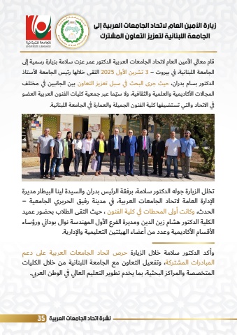 %u0646%u0634%u0631%u0629 %u0627%u062a%u062d%u0627%u062f %u0627%u0644%u062c%u0627%u0645%u0639%u0627%u062a %u0627%u0644%u0639%u0631%u0628%u064a%u0629 35%u0632%u064a%u0627%u0631%u0629 %u0627%u0644%u0623%u0645%u064a%u0646 %u0627%u0644%u0639%u0627%u0645 %u0644%u0627%u062a%u062d%u0627%u062f %u0627%u0644%u062c%u0627%u0645%u0639%u0627%u062a %u0627%u0644%u0639%u0631%u0628%u064a%u0629 %u0625%u0644%u0649 %u0627%u0644%u062c%u0627%u0645%u0639%u0629 %u0627%u0644%u0644%u0628%u0646%u0627%u0646%u064a%u0629 %u0644%u062a%u0639%u0632%u064a%u0632 %u0627%u0644%u062a%u0639%u0627%u0648%u0646 %u0627%u0644%u0645%u0634%u062a%u0631%u0643%u0642%u0627%u0645 %u0645%u0639%u0627%u0644%u064a %u0627%u0644%u0623%u0645%u064a%u0646 %u0627%u0644%u0639%u0627%u0645 %u0644%u0627%u062a%u062d%u0627%u062f %u0627%u0644%u062c%u0627%u0645%u0639%u0627%u062a %u0627%u0644%u0639%u0631%u0628%u064a%u0629 %u0627%u0644%u062f%u0643%u062a%u0648%u0631 %u0639%u0645%u0631 %u0639%u0632%u062a %u0633%u0644%u0627%u0645%u0629 %u0628%u0632%u064a%u0627%u0631%u0629 %u0631%u0633%u0645%u064a%u0629 %u0625%u0644%u0649 %u0627%u0644%u062c%u0627%u0645%u0639%u0629 %u0627%u0644%u0644%u0628%u0646%u0627%u0646%u064a%u0629%u060c %u0641%u064a %u0628%u064a%u0631%u0648%u062a %u2013 3 %u062a%u0634%u0631%u064a%u0646 %u0627%u0644%u0623%u0648%u0644 2025 %u0627%u0644%u062a%u0642%u0649 %u062e%u0644%u0627%u0644%u0647%u0627 %u0631%u0626%u064a%u0633 %u0627%u0644%u062c%u0627%u0645%u0639%u0629 %u0627%u0644%u0623%u0633%u062a%u0627%u0630 %u0627%u0644%u062f%u0643%u062a%u0648%u0631 %u0628%u0633%u0627%u0645 %u0628%u062f%u0631%u0627%u0646%u060c %u062d%u064a%u062b %u062c%u0631%u0649 %u0627%u0644%u0628%u062d%u062b %u0641%u064a %u0633%u0628%u0644 %u062a%u0639%u0632%u064a%u0632 %u0627%u0644%u062a%u0639%u0627%u0648%u0646 %u0628%u064a%u0646 %u0627%u0644%u062c%u0627%u0646%u0628%u064a%u0646 %u0641%u064a %u0645%u062e%u062a%u0644%u0641 %u0651%u0645%u0627 %u0639%u0628%u0631 %u062c%u0645%u0639%u064a%u0629 %u0643%u0644%u064a%u0627%u062a %u0627%u0644%u0641%u0646%u0648%u0646 %u0627%u0644%u0639%u0631%u0628%u064a%u0629 %u0627%u0644%u0639%u0636%u0648 %u0627%u0644%u0645%u062c%u0627%u0644%u0627%u062a %u0627%u0644%u0623%u0643%u0627%u062f%u064a%u0645%u064a%u0629 %u0648%u0627%u0644%u0639%u0644%u0645%u064a%u0629 %u0648%u0627%u0644%u062b%u0642%u0627%u0641%u064a%u0629%u060c %u0648%u0644%u0627 %u0633%u064a%u0641%u064a %u0627%u0644%u0627%u062a%u062d%u0627%u062f %u0648%u0627%u0644%u062a%u064a %u062a%u0633%u062a%u0636%u064a%u0641%u0647%u0627 %u0643%u0644%u064a%u0629 %u0627%u0644%u0641%u0646%u0648%u0646 %u0627%u0644%u062c%u0645%u064a%u0644%u0629 %u0648%u0627%u0644%u0639%u0645%u0627%u0631%u0629 %u0641%u064a %u0627%u0644%u062c%u0627%u0645%u0639%u0629 %u0627%u0644%u0644%u0628%u0646%u0627%u0646%u064a%u0629.%u062a%u062e%u0644%u0644 %u0627%u0644%u0632%u064a%u0627%u0631%u0629 %u062c%u0648%u0644%u0647 %u0627%u0644%u062f%u0643%u062a%u0648%u0631 %u0633%u0644%u0627%u0645%u0629%u060c %u0628%u0631%u0641%u0642%u0629 %u0627%u0644%u0631%u0626%u064a%u0633 %u0628%u062f%u0631%u0627%u0646 %u0648%u0627%u0644%u0633%u064a%u062f%u0629 %u0644%u064a%u0646%u0627 %u0627%u0644%u0628%u064a%u0637%u0627%u0631 %u0645%u062f%u064a%u0631%u0629 %u0627%u0644%u0625%u062f%u0627%u0631%u0629 %u0627%u0644%u0639%u0627%u0645%u0629 %u0644%u0627%u062a%u062d%u0627%u062f %u0627%u0644%u062c%u0627%u0645%u0639%u0627%u062a %u0627%u0644%u0639%u0631%u0628%u064a%u0629%u060c %u0641%u064a %u0645%u062f%u064a%u0646%u0629 %u0631%u0641%u064a%u0642 %u0627%u0644%u062d%u0631%u064a%u0631%u064a %u0627%u0644%u062c%u0627%u0645%u0639%u064a%u0629 %u2013 %u0627%u0644%u062d%u062f%u062b%u060c %u0648%u0643%u0627%u0646%u062a %u0623%u0648%u0644%u0649 %u0627%u0644%u0645%u062d%u0637%u0627%u062a %u0641%u064a %u0643%u0644%u064a%u0629 %u0627%u0644%u0641%u0646%u0648%u0646 %u060c %u062d%u064a%u062b %u0627%u0644%u062a%u0642%u0649 %u0627%u0644%u0637%u0644%u0627%u0628 %u0628%u062d%u0636%u0648%u0631 %u0639%u0645%u064a%u062f %u0627%u0644%u0643%u0644%u064a%u0629 %u0627%u0644%u062f%u0643%u062a%u0648%u0631 %u0647%u0634%u0627%u0645 %u0632%u064a%u0646 %u0627%u0644%u062f%u064a%u0646 %u0648%u0645%u062f%u064a%u0631%u0629 %u0627%u0644%u0641%u0631%u0639 %u0627%u0644%u0623%u0648%u0644 %u0627%u0644%u0645%u0647%u0646%u062f%u0633%u0629 %u0646%u0648%u0627%u0644 %u0628%u0648%u062f%u0627%u0646%u064a %u0648%u0631%u0624%u0633%u0627%u0621 %u0627%u0644%u0623%u0642%u0633%u0627%u0645 %u0627%u0644%u0623%u0643%u0627%u062f%u064a%u0645%u064a%u0629 %u0648%u0639%u062f%u062f %u0645%u0646 %u0623%u0639%u0636%u0627%u0621 %u0627%u0644%u0647%u064a%u0626%u062a%u064a%u0646 %u0627%u0644%u062a%u0639%u0644%u064a%u0645%u064a%u0629 %u0648%u0627%u0644%u0625%u062f%u0627%u0631%u064a%u0629.%u0648%u0623%u0643%u062f %u0627%u0644%u062f%u0643%u062a%u0648%u0631 %u0633%u0644%u0627%u0645%u0629 %u062e%u0644%u0627%u0644 %u0627%u0644%u0632%u064a%u0627%u0631%u0629 %u062d%u0631%u0635 %u0627%u062a%u062d%u0627%u062f %u0627%u0644%u062c%u0627%u0645%u0639%u0627%u062a %u0627%u0644%u0639%u0631%u0628%u064a%u0629 %u0639%u0644%u0649 %u062f%u0639%u0645 %u0627%u0644%u0645%u0628%u0627%u062f%u0631%u0627%u062a %u0627%u0644%u0645%u0634%u062a%u0631%u0643%u0629%u060c %u0648%u062a%u0641%u0639%u064a%u0644 %u0627%u0644%u062a%u0639%u0627%u0648%u0646 %u0645%u0639 %u0627%u0644%u062c%u0627%u0645%u0639%u0629 %u0627%u0644%u0644%u0628%u0646%u0627%u0646%u064a%u0629 %u0645%u0646 %u062e%u0644%u0627%u0644 %u0627%u0644%u0643%u0644%u064a%u0627%u062a %u0627%u0644%u0645%u062a%u062e%u0635%u0635%u0629 %u0648%u0627%u0644%u0645%u0631%u0627%u0643%u0632 %u0627%u0644%u0628%u062d%u062b%u064a%u0629%u060c %u0628%u0645%u0627 %u064a%u062e%u062f%u0645 %u062a%u0637%u0648%u064a%u0631 %u0627%u0644%u062a%u0639%u0644%u064a%u0645 %u0627%u0644%u0639%u0627%u0644%u064a %u0641%u064a %u0627%u0644%u0648%u0637%u0646 %u0627%u0644%u0639%u0631%u0628%u064a.