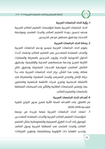 %u0627%u0644%u062e%u0637%u0629 %u0627%u0627%u0644%u0633%u0631%u062a%u0627%u062a%u064a%u062c%u064a%u0629 %u0627%u0644%u062a%u062d%u0627%u062f %u0627%u0644%u062c%u0627%u0645%u0639%u0627%u062a %u0627%u0644%u0639%u0631%u0628%u064a%u0629 2019 -2030161 .%u0631%u0624%u064a%u0629 %u0627%u062a%u062d%u0627%u062f %u0627%u0644%u062c%u0627%u0645%u0639%u0627%u062a %u0627%u0644%u0639%u0631%u0628%u064a%u0629%u0627%u062a%u062d%u0627%u062f %u0627%u0644%u062c%u0627%u0645%u0639%u0627%u062a %u0627%u0644%u0639%u0631%u0628%u064a%u0629 %u0645%u0646%u0635%u0629 %u0645%u0644%u0624%u0633%u0633%u0627%u062a %u0627%u0644%u062a%u0639%u0644%u064a%u0645 %u0627%u0644%u0639%u0627%u064a%u0644 %u0627%u0644%u0639%u0631%u0628%u064a%u0629 %u0647%u062f%u0641%u0647 %u062a%u062d%u0633%u0646%u064a %u062c%u0648%u062f%u0629 %u0627%u0644%u062a%u0639%u0644%u064a%u0645 %u0627%u0644%u0639%u0627%u064a%u0644 %u0648%u0627%u0644%u0628%u062d%u062b %u0627%u0644%u0639%u0644%u0645%u064a %u0648%u0645%u0648%u0627%u062c%u0647%u0629 %u0627%u0644%u062a%u062d%u062f%u064a%u0627%u062a %u0648%u062a%u062d%u0642%u064a%u0642 %u0645%u0633%u062a%u0642%u0628%u0644 %u0645%u0632%u062f%u0647%u0631 %u0644%u0644%u062e%u0631%u064a%u062c%u0646%u064a.2 .%u0631%u0633%u0627%u0644%u0629 %u0627%u062a%u062d%u0627%u062f %u0627%u0644%u062c%u0627%u0645%u0639%u0627%u062a %u0627%u0644%u0639%u0631%u0628%u064a%u0629%u064a%u0642%u0648%u0645 %u0627%u062a%u062d%u0627%u062f %u0627%u0644%u062c%u0627%u0645%u0639%u0627%u062a %u0627%u0644%u0639%u0631%u0628%u064a%u0629 %u0628%u062a%u064a%u0633%u0631%u064a %u0648%u062f%u0639%u0645 %u0627%u0644%u062c%u0627%u0645%u0639%u0627%u062a %u0627%u0644%u0639%u0631%u0628%u064a%u0629 %u0648%u0623%u0635%u062d%u0627%u0628 %u0627%u0645%u0644%u0635%u0644%u062d%u0629 %u0627%u0645%u0644%u062a%u0639%u062f%u062f%u064a%u0646 %u064a%u0641 %u0627%u0644%u062a%u0639%u0644%u064a%u0645 %u0627%u0644%u0639%u0627%u064a%u0644 %u0648%u0627%u0639%u062a%u0627%u0645%u062f %u0623%u062d%u062f%u062b %u0627%u0644%u062d%u0644%u0648%u0644 %u0627%u0644%u062a%u062d%u0648%u064a%u0644%u064a%u0629 %u0644%u0625%u0644%u0639%u062f%u0627%u062f %u0648%u062a%u0632%u0648%u064a%u062f %u0627%u0644%u062e%u0631%u064a%u062c%u0646%u064a %u0628%u0627%u0645%u0644%u0639%u0631%u0641%u0629 %u0648%u0627%u0645%u0644%u0647%u0627%u0631%u0627%u062a %u0627%u0644%u0627%u0644%u0632%u0645%u0629 %u0644%u062a%u0639%u0632%u064a%u0632 %u0648%u062e%u062f%u0645%u0629 %u0645%u062c%u062a%u0645%u0639%u0627%u062a%u0647%u0645 %u0627%u0645%u0644%u062d%u0644%u064a%u0629 %u0648%u0627%u0625%u0644%u0642%u0644%u064a%u0645%u064a%u0629%u061b %u0648%u062a%u062d%u0642%u064a%u0642 %u0627%u0644%u062a%u0643%u0627%u0645%u0644 %u0627%u0644%u0639%u0627%u0645%u0644%u064a %u0645%u0644%u0648%u0627%u062c%u0647%u0629 %u0627%u0644%u062a%u062d%u062f%u064a%u0627%u062a %u0627%u0645%u0644%u0634%u0631%u062a%u0643%u0629 %u0648%u062a%u062d%u0642%u064a%u0642 %u0646%u062a%u0627%u0626%u062c %u0641%u0639%u0627%u0644%u0629. %u0648%u064a%u0641 %u0647%u0630%u0627 %u0627%u0644%u0634%u0623%u0646%u060c %u064a%u0631%u0643%u0632 %u0627%u062a%u062d%u0627%u062f %u0627%u0644%u062c%u0627%u0645%u0639%u0627%u062a %u0627%u0644%u0639%u0631%u0628%u064a%u0629 %u0639%u0649%u0644 %u0628%u062f%u0623 %u062d%u0631%u0643%u0629 %u0627%u0625%u0644%u0646%u062a%u0627%u062c %u0648%u0627%u0644%u062a%u0628%u0627%u062f%u0644 %u0627%u0645%u0644%u0639%u0631%u064a%u0641 %u0648%u0627%u0644%u0628%u062d%u062b %u0627%u0645%u0644%u0634%u0631%u062a%u0643 %u0648%u0627%u0645%u0644%u0634%u0627%u0631%u0643%u0629 %u064a%u0641 %u0627%u0623%u0644%u0646%u0634%u0637%u0629 %u0627%u0644%u062c%u0627%u0645%u0639%u064a%u0629 %u0648%u062a%u0639%u0632%u064a%u0632 %u0642%u062f%u0631%u0627%u062a %u0627%u0627%u0644%u0646%u0638%u0645%u0629 %u0627%u0644%u062c%u0627%u0645%u0639%u064a%u0629 %u0648%u0627%u0644%u0639%u0627%u0645%u0644%u0646%u064a %u0628%u0647%u0627%u060c %u0648%u0645%u062a%u0643%u0646%u064a %u0627%u0645%u0644%u062c%u062a%u0645%u0639%u0627%u062a %u0627%u0644%u0637%u0627%u0644%u0628%u064a%u0629 %u0648%u0627%u0644%u062a%u0623%u062b%u0631%u064a %u064a%u0641 %u0627%u0644%u0633%u064a%u0627%u0633%u0627%u062a %u0627%u0645%u0644%u062a%u0639%u0644%u0642%u0629 %u0628%u0627%u0644%u062c%u0627%u0645%u0639%u0627%u062a %u0648%u0627%u0644%u062a%u0639%u0644%u064a%u0645 %u0627%u0644%u0639%u0627%u064a%u0644.4 .%u0623%u0647%u062f%u0627%u0641 %u0627%u062a%u062d%u0627%u062f %u0627%u0644%u062c%u0627%u0645%u0639%u0627%u062a %u0627%u0644%u0639%u0631%u0628%u064a%u0629%u062a%u0645 %u0627%u0627%u0644%u062a%u0641%u0627%u0642 %u0639%u0649%u0644 %u0627%u0623%u0644%u0647%u062f%u0627%u0641 %u0627%u0644%u0633%u062a%u0629 %u0627%u0622%u0644%u062a%u064a%u0629 %u0644%u062a%u0635%u0628%u062d %u0645%u062d%u0648%u0631 %u0627%u0644%u0631%u062a%u0643%u064a%u0632 %u0644%u0644%u0641%u0631%u062a%u0629 :2030-2019 %u0627%u0644%u0642%u0627%u062f%u0645%u06291 .%u0627%u0639%u062a%u0627%u0645%u062f %u0627%u062a%u062d%u0627%u062f %u0627%u0644%u062c%u0627%u0645%u0639%u0627%u062a %u0627%u0644%u0639%u0631%u0628%u064a%u0629 %u0645%u0646%u0635%u0629 %u0641%u0631%u064a%u062f%u0629 %u0645%u0646 %u0646%u0648%u0639%u0647%u0627 %u0645%u0644%u0624%u0633%u0633%u0627%u062a %u0627%u0644%u062a%u0639%u0644%u064a%u0645 %u0627%u0644%u0639%u0627%u064a%u0644 %u0627%u0644%u0639%u0631%u0628%u064a%u0629 %u0648%u0623%u0635%u062d%u0627%u0628 %u0627%u0645%u0644%u0635%u0644%u062d%u0629 %u0627%u0645%u0644%u062a%u0639%u062f%u062f%u064a%u0646 %u0644%u0644%u0648%u0635%u0648%u0644 %u0625%u0649%u0644 %u0623%u062d%u062f%u062b %u0627%u0644%u0637%u0631%u0642 %u0627%u0645%u0644%u0639%u0631%u0641%u064a%u0629 %u0648%u0627%u0645%u0644%u0639%u0644%u0648%u0645%u0627%u062a%u064a%u0629 %u0628%u0634%u0623%u0646 %u0627%u0644%u062a%u0639%u0644%u064a%u0645 %u0627%u0644%u0639%u0627%u064a%u0644 %u0648%u0627%u0644%u0628%u062d%u062b %u0627%u0644%u0639%u0644%u0645%u064a %u064a%u0641 %u0627%u0645%u0644%u0646%u0637%u0642%u0629 %u0627%u0644%u0639%u0631%u0628%u064a%u0629 %u0648%u062d%u0648%u0644 %u0627%u0644%u0639%u0627%u0645%u0644%u061b %u0648%u062a%u062d%u062f%u064a%u062f %u0627%u0644%u0642%u0636%u0627%u064a