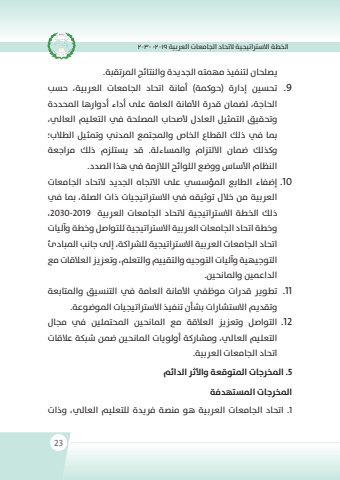 %u0627%u0644%u062e%u0637%u0629 %u0627%u0627%u0644%u0633%u0631%u062a%u0627%u062a%u064a%u062c%u064a%u0629 %u0627%u0644%u062a%u062d%u0627%u062f %u0627%u0644%u062c%u0627%u0645%u0639%u0627%u062a %u0627%u0644%u0639%u0631%u0628%u064a%u0629 2019 -203023%u064a%u0635%u0644%u062d%u0627%u0646 %u0644%u062a%u0646%u0641%u064a%u0630 %u0645%u0647%u0645%u062a%u0647 %u0627%u0644%u062c%u062f%u064a%u062f%u0629 %u0648%u0627%u0644%u0646%u062a%u0627%u0626%u062c %u0627%u0645%u0644%u0631%u062a%u0642%u0628%u0629.9 .%u062a%u062d%u0633%u0646%u064a %u0625%u062f%u0627%u0631%u0629 )%u062d%u0648%u0643%u0645%u0629( %u0623%u0645%u0627%u0646%u0629 %u0627%u062a%u062d%u0627%u062f %u0627%u0644%u062c%u0627%u0645%u0639%u0627%u062a %u0627%u0644%u0639%u0631%u0628%u064a%u0629%u060c %u062d%u0633%u0628 %u0627%u0644%u062d%u0627%u062c%u0629%u060c %u0644%u0636%u0627%u0645%u0646 %u0642%u062f%u0631%u0629 %u0627%u0623%u0644%u0645%u0627%u0646%u0629 %u0627%u0644%u0639%u0627%u0645%u0629 %u0639%u0649%u0644 %u0623%u062f%u0627%u0621 %u0623%u062f%u0648%u0627%u0631%u0647%u0627 %u0627%u0645%u0644%u062d%u062f%u062f%u0629 %u0648%u062a%u062d%u0642%u064a%u0642 %u0627%u0644%u062a%u0645%u062b%u064a%u0644 %u0627%u0644%u0639%u0627%u062f%u0644 %u0623%u0644%u0635%u062d%u0627%u0628 %u0627%u0645%u0644%u0635%u0644%u062d%u0629 %u064a%u0641 %u0627%u0644%u062a%u0639%u0644%u064a%u0645 %u0627%u0644%u0639%u0627%u064a%u0644%u060c %u0645%u0628%u0627 %u064a%u0641 %u0630%u0644%u0643 %u0627%u0644%u0642%u0637%u0627%u0639 %u0627%u0644%u062e%u0627%u0635 %u0648%u0627%u0645%u0644%u062c%u062a%u0645%u0639 %u0627%u0645%u0644%u062f%u064a%u0646 %u0648%u0645%u062a%u062b%u064a%u0644 %u0627%u0644%u0637%u0627%u0644%u0628%u061b %u0648%u0643%u0630%u0644%u0643 %u0636%u0627%u0645%u0646 %u0627%u0627%u0644%u0644%u062a%u0632%u0627%u0645 %u0648%u0627%u0645%u0644%u0633%u0627%u0621%u0644%u0629. %u0642%u062f %u064a%u0633%u062a%u0644%u0632%u0645 %u0630%u0644%u0643 %u0645%u0631%u0627%u062c%u0639%u0629 %u0627%u0644%u0646%u0638%u0627%u0645 %u0627%u0623%u0644%u0633%u0627%u0633 %u0648%u0648%u0636%u0639 %u0627%u0644%u0644%u0648%u0627%u0626%u062d %u0627%u0644%u0627%u0644%u0632%u0645%u0629 %u064a%u0641 %u0647%u0630%u0627 %u0627%u0644%u0635%u062f%u062f.1010%u0625%u0636%u0641%u0627%u0621 %u0627%u0644%u0637%u0627%u0628%u0639 %u0627%u0645%u0644%u0624%u0633%u064a%u0633 %u0639%u0649%u0644 %u0627%u0627%u0644%u062a%u062c%u0627%u0647 %u0627%u0644%u062c%u062f%u064a%u062f %u0627%u0644%u062a%u062d%u0627%u062f %u0627%u0644%u062c%u0627%u0645%u0639%u0627%u062a %u0627%u0644%u0639%u0631%u0628%u064a%u0629 %u0645%u0646 %u062e%u0627%u0644%u0644 %u062a%u0648%u062b%u064a%u0642%u0647 %u064a%u0641 %u0627%u0627%u0644%u0633%u0631%u062a%u0627%u062a%u064a%u062c%u064a%u0627%u062a %u0630%u0627%u062a %u0627%u0644%u0635%u0644%u0629%u060c %u0645%u0628%u0627 %u064a%u0641 %u0630%u0644%u0643 %u0627%u0644%u062e%u0637%u0629 %u0627%u0627%u0644%u0633%u0631%u062a%u0627%u062a%u064a%u062c%u064a%u0629 %u0627%u0644%u062a%u062d%u0627%u062f %u0627%u0644%u062c%u0627%u0645%u0639%u0627%u062a %u0627%u0644%u0639%u0631%u0628%u064a%u0629 2019-2030 %u060c%u0648%u062e%u0637%u0629 %u0627%u062a%u062d%u0627%u062f %u0627%u0644%u062c%u0627%u0645%u0639%u0627%u062a %u0627%u0644%u0639%u0631%u0628%u064a%u0629 %u0627%u0627%u0644%u0633%u0631%u062a%u0627%u062a%u064a%u062c%u064a%u0629 %u0644%u0644%u062a%u0648%u0627%u0635%u0644 %u0648%u062e%u0637%u0629 %u0648%u0622%u0644%u064a%u0627%u062a %u0627%u062a%u062d%u0627%u062f %u0627%u0644%u062c%u0627%u0645%u0639%u0627%u062a %u0627%u0644%u0639%u0631%u0628%u064a%u0629 %u0627%u0627%u0644%u0633%u0631%u062a%u0627%u062a%u064a%u062c%u064a%u0629 %u0644%u0644%u0631%u0634%u0627%u0643%u0629%u060c %u0625%u0649%u0644 %u062c%u0627%u0646%u0628 %u0627%u0645%u0644%u0628%u0627%u062f%u0626 %u0627%u0644%u062a%u0648%u062c%u064a%u0647%u064a%u0629 %u0648%u0622%u0644%u064a%u0627%u062a %u0627%u0644%u062a%u0648%u062c%u064a%u0647 %u0648%u0627%u0644%u062a%u0642%u064a%u064a%u0645 %u0648%u0627%u0644%u062a%u0639%u0644%u0645%u060c %u0648%u062a%u0639%u0632%u064a%u0632 %u0627%u0644%u0639%u0627%u0644%u0642%u0627%u062a %u0645%u0639 %u0627%u0644%u062f%u0627%u0639%u0645%u0646%u064a %u0648%u0627%u0645%u0644%u0627%u0646%u062d%u0646%u064a.1111%u062a%u0637%u0648%u064a%u0631 %u0642%u062f%u0631%u0627%u062a %u0645%u0648%u0638%u0641%u064a %u0627%u0623%u0644%u0645%u0627%u0646%u0629 %u0627%u0644%u0639%u0627%u0645%u0629 %u064a%u0641 %u0627%u0644%u062a%u0646%u0633%u064a%u0642 %u0648%u0627%u0645%u0644%u062a%u0627%u0628%u0639%u0629 %u0648%u062a%u0642%u062f%u064a%u0645 %u0627%u0627%u0644%u0633%u062a%u0634%u0627%u0631%u0627%u062a %u0628%u0634%u0623%u0646 %u062a%u0646%u0641%u064a%u0630 %u0627%u0627%u0644%u0633%u0631%u062a%u0627%u062a%u064a%u062c%u064a%u0627%u062a %u0627%u0645%u0644%u0648%u0636%u0648%u0639%u0629.1212%u0627%u0644%u062a%u0648%u0627%u0635%u0644 %u0648%u062a%u0639%u0632%u064a%u0632 %u0627%u0644%u0639%u0627%u0644%u0642%u0629 %u0645%u0639 %u0627%u0645%u0644%u0627%u0646%u062d%u0646%u064a %u0627%u0645%u0644%u062d%u062a%u0645%u0644%u0646%u064a %u064a%u0641 %u0645%u062c%u0627%u0644 %u0627%u0644%u062a%u0639%u0644%u064a%u0645 %u0627%u0644%u0639%u0627%u064a%u0644%u060c %u0648%u0645%u0634%u0627%u0631%u0643%u0629 %u0623%u0648%u0644%u0648%u064a%u0627%u062a %u0627%u0645%u0644%u0627%u0646%u062d%u0646%u064a %u0636%u0645%u0646 %u0634%u0628%u0643%u0629 %u0639%u0627%u0644%u0642%u0627%u062a %u0627%u062a%u062d%u0627%u062f %u0627%u0644%u062c%u0627%u0645%u0639%u0627%u062a %u0627%u0644%u0639%u0631%u0628%u064a%u0629.5 .%u0627%u0645%u0644%u062e%u0631%u062c%u0627%u062a %u0627%u0645%u0644%u062a%u0648%u0642%u0639%u0629 %u0648%u0627%u0623%u0644%u062b%u0631 %u0627%u0644%u062f%u0627%u0626%u0645%u0627%u0645%u0644%u062e%u0631%u062c%u0627%u062a %u0627%u0645%u0644%u0633%u062a%u0647%u062f%u0641%u06291 .%u0627%u062a%u062d%u0627%u062f %u0627%u0644%u062c%u0627%u0645%u0639%u0627%u062a %u0627%u0644%u0639%u0631%u0628%u064a%u0629 %u0647%u0648 %u0645%u0646%u0635%u0629 %u0641%u0631%u064a%u062f%u0629 %u0644%u0644%u062a%u0639%u0644%u064a%u0645 %u0627%u0644%u0639%u0627%u064a%u0644%u060c %u0648%u0630%u0627%u062a